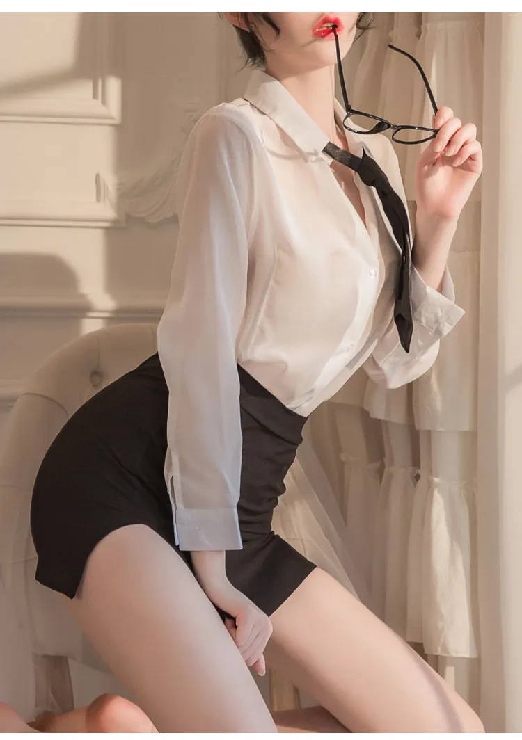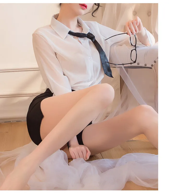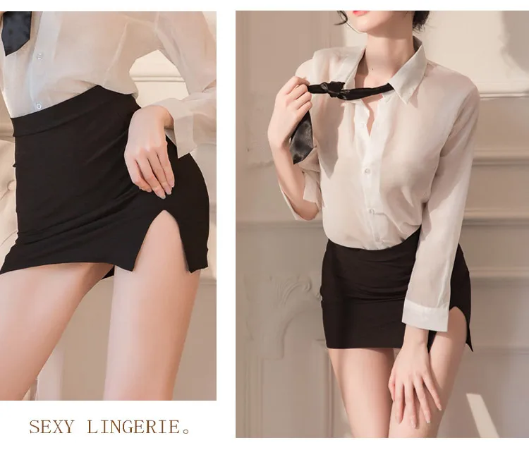 Эротическое искушение, эротическое нижнее белье для офиса, леди, маскарадная униформа, ночная рубашка с длинными рукавами, мини-юбка, нижнее белье