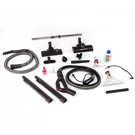 | Насадки в комплекте | • Универсальная щётка пол/ковёр с металлической основой• Турбо-щётка для глубокой очистки ковровых покрытий• Удлиненная щелевая насадка• Насадка для чистки текстиля, тканевых обивок мебели (прямоугольная)• Насадка для мебели с мягким ворсом• Крепление для аксессуаров• Большая насадка для влажной уборки• Маленькая насадка для влажной уборки |