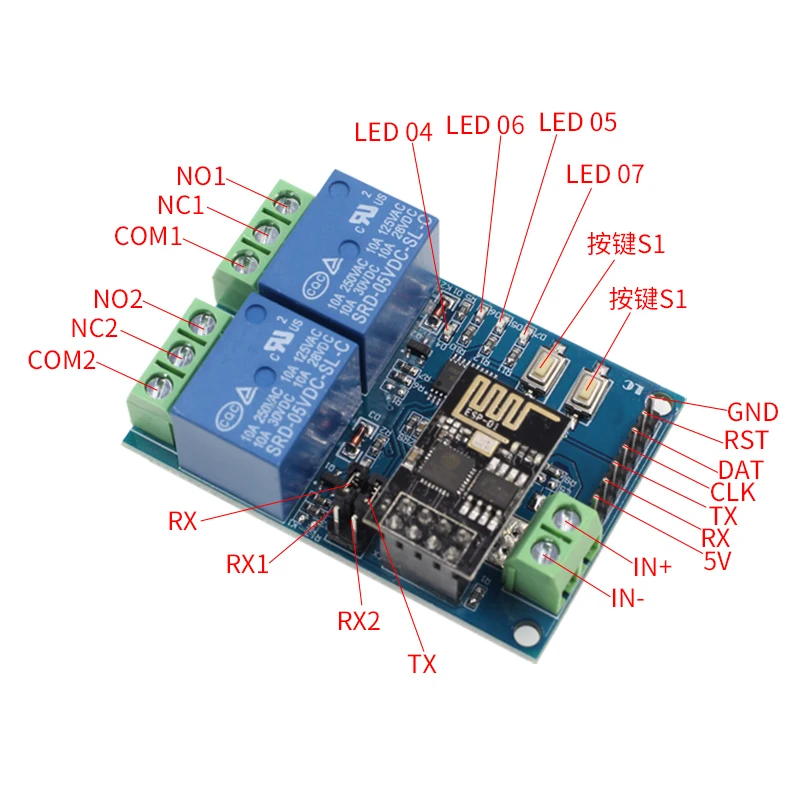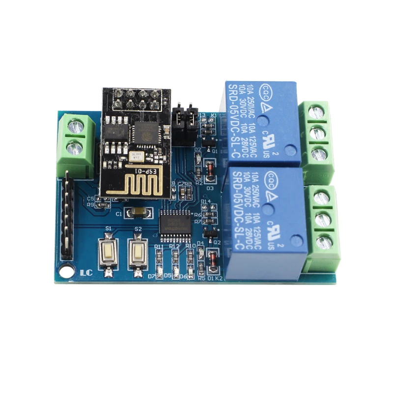Двойной модуль реле Wi-Fi 5 в использует ESP-01 в качестве модуля Wi-Fi и совместим с микросхемой 8 бит MCU. Только простая Настройка процесса может осуществить Беспроводное управление 2 способ реле с помощью мобильный телефон приложение.