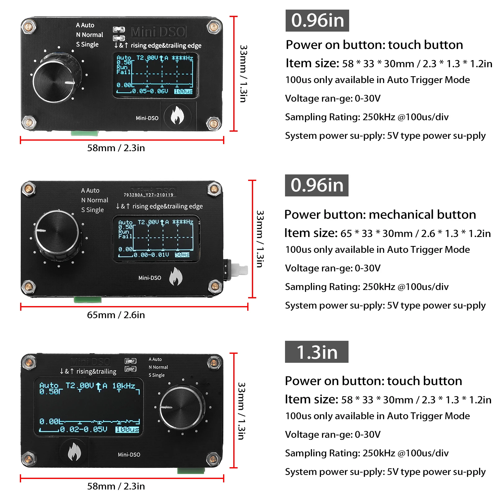Этот мини-осциллограф имеет небольшой размер, и с 0,96 дюймовым oled-экраном, частотой выборки 250 кГц, MCU использует STC8A8K64S4A12 @ 27 МГц, приходите и попробуйте, это не подведет вас.