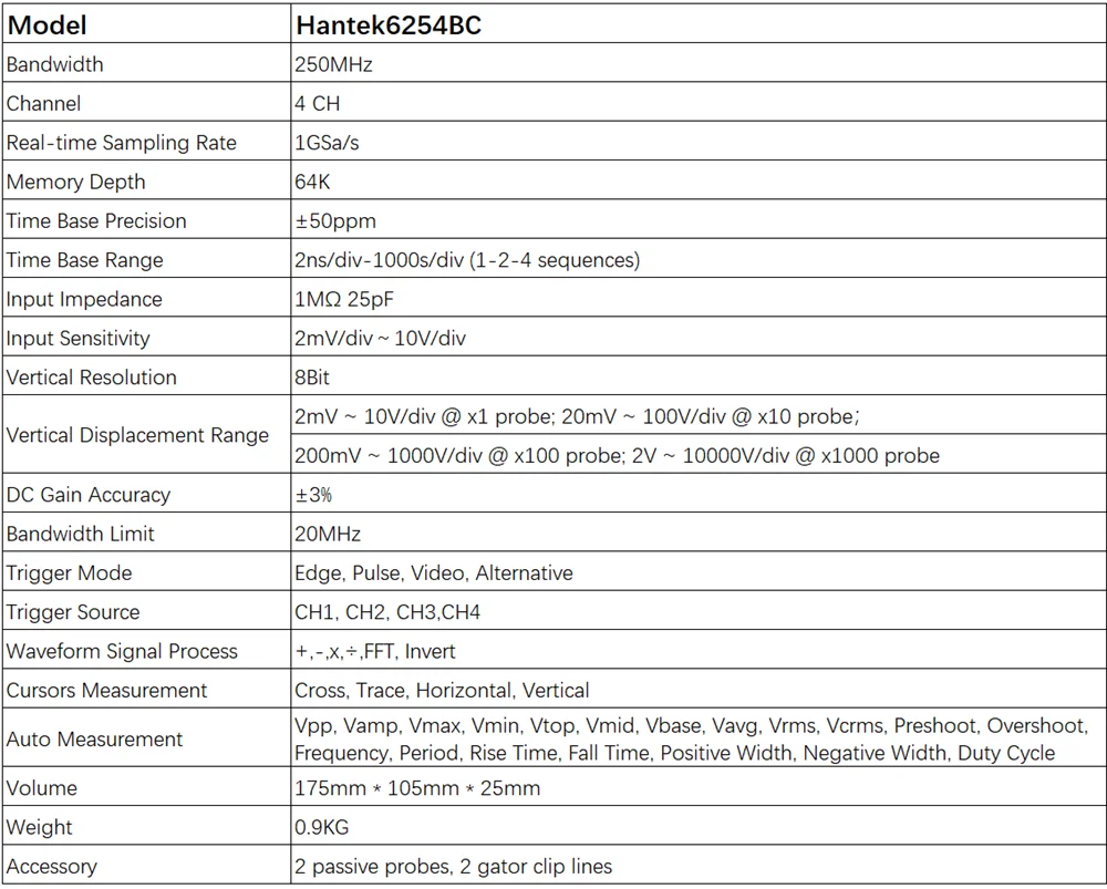 Производительность этой модели может быть даже лучше, чем производительность осциллографа. Он имеет 4 аналоговых канала, 1gsa/s частота дискретизации в реальном времени, 2 мВ-10 В/DIV Входная чувствительность и полоса пропускания 250 МГц. Он питается от интерфейса USB2.0, подключи и играй устройство с небольшим размером, который легко носить с собой. Высокая эффективность затрат, тест на пропуск/сбой, находчивая функция запуска, динамическое отслеживание курсора, запись сигналов и функция воспроизведения.