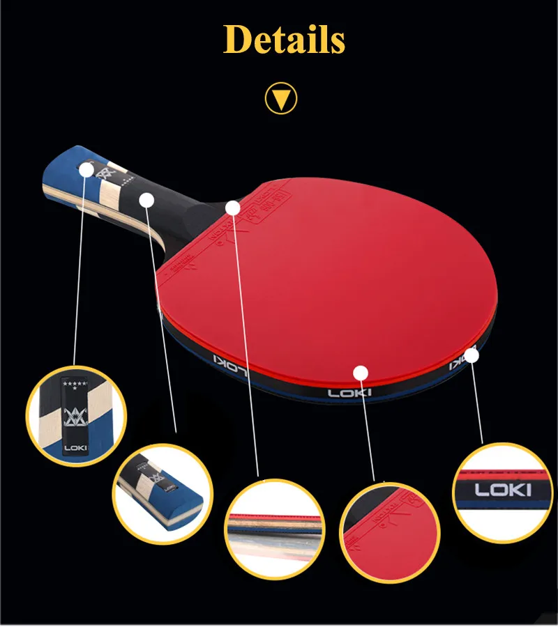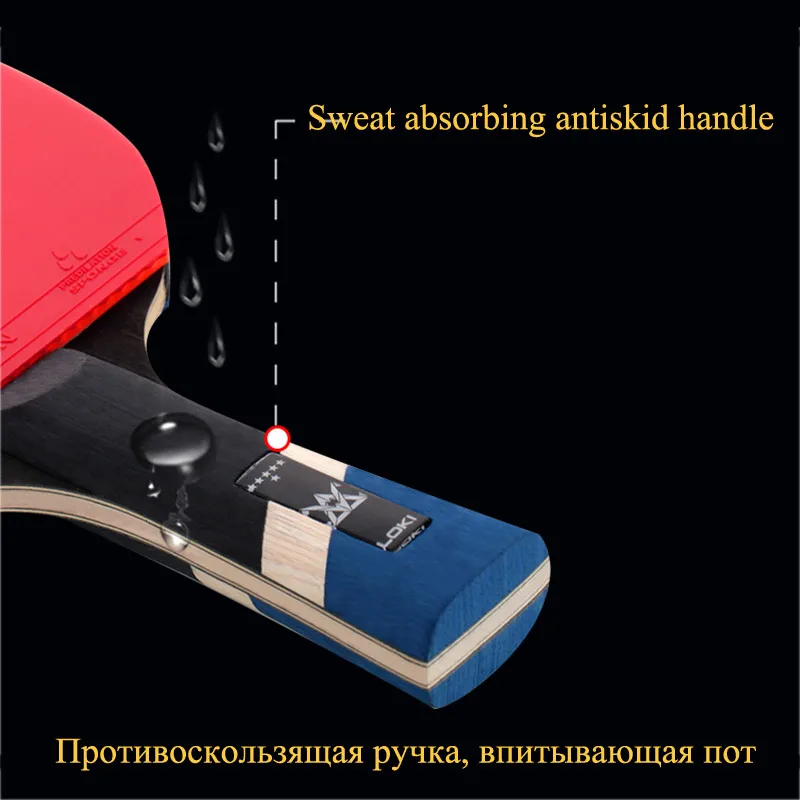 LOKI новинка, 6 звезд, липкая ракетка для настольного тенниса, 7 слоев, углеродное лезвие, ракетка для пингпонга, прыщи в ракете для пинг понга, весло для быстрой атаки Спецификация: Тип товара: ракетка для настольного тенниса LOKI 6 STAR Тип ручки: CS (короткая ручка) / FL (длинная ручка) Лезвие: 5 + 2 слоя лезвие из углеродистой стали Резина: специальная импортная липкая Резина Губка: высокоэластичная Спортивная губка Вес: FL 185 ± 5g прибл., CS 175 ± 5g прибл. Подходит для: профессионального и продвинутого Комплектация: ракетка 6 звезд * 1 + сумка * 1 (без коробки) Примечание: Это нормально с новыми резиновыми запахами.