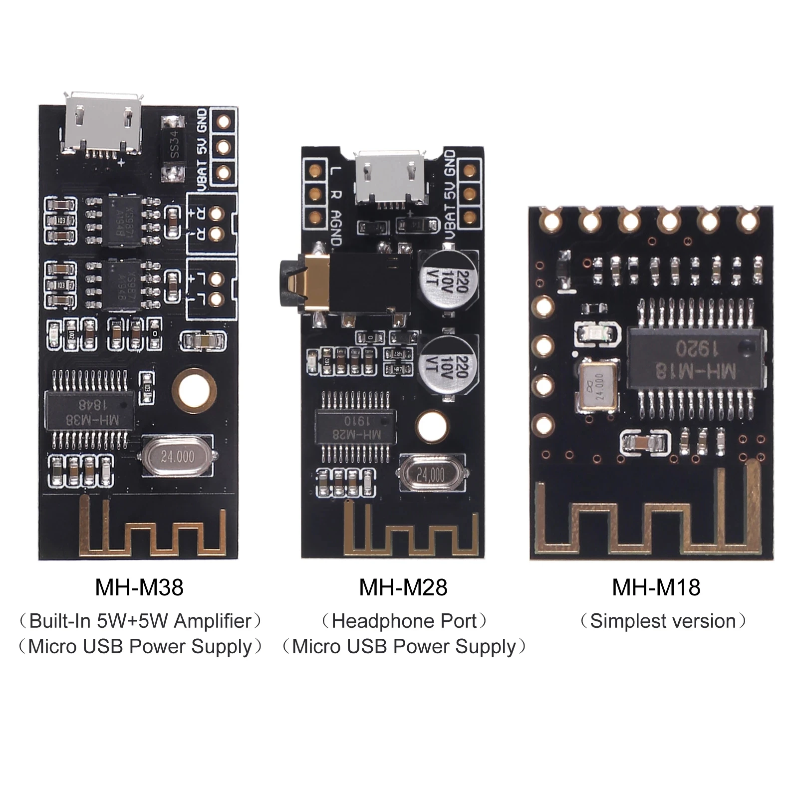 2. После включения модуля мобильный телефон ищет имя Bluetooth MH-M18/MH-M28/MH-M38 и может воспроизводить музыку после подключения Bluetooth.