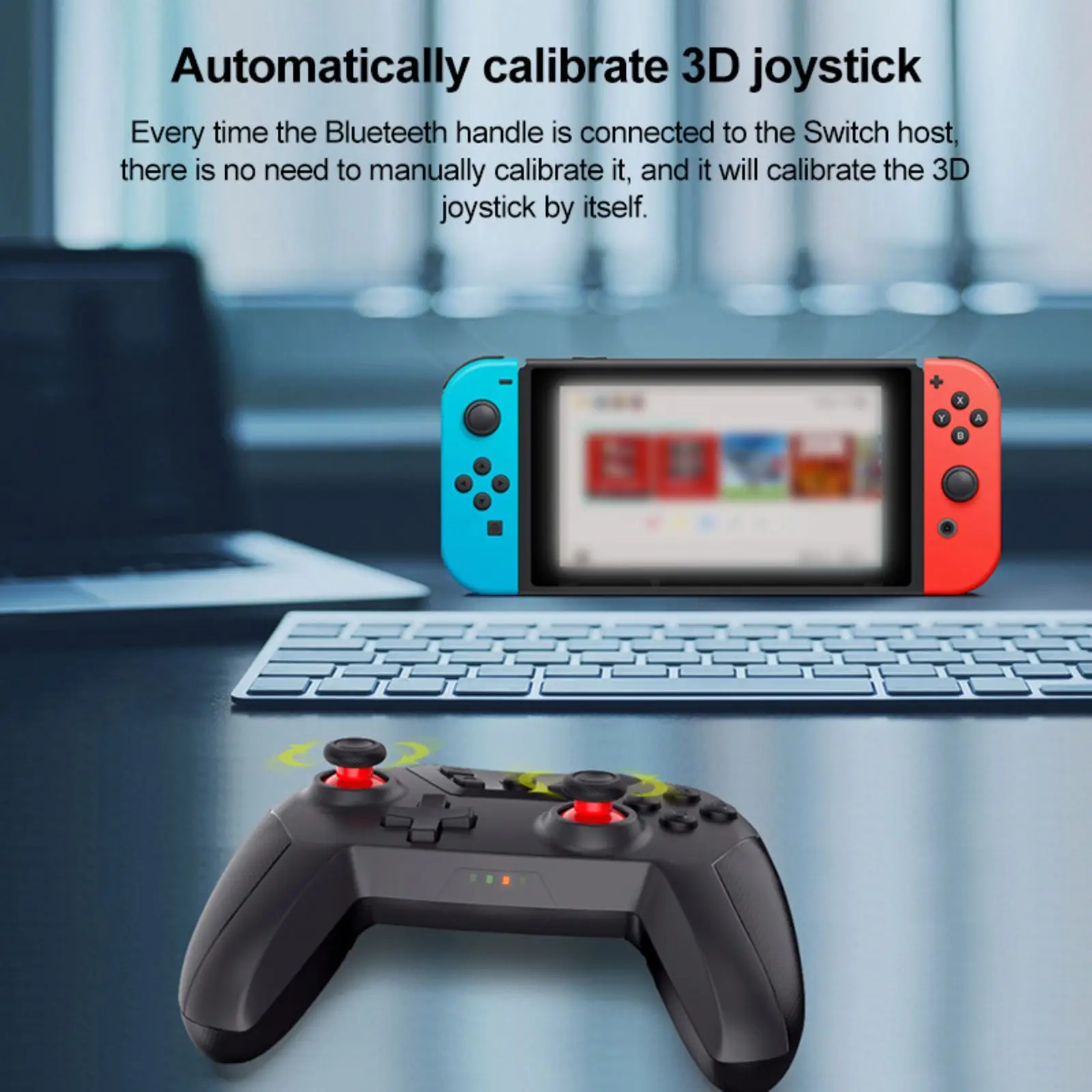 Дизайн 3D джойстика, нет необходимости вручную калибровать каждый раз, когда контроллер Bluetooth подключен к хосту переключателя, он автоматически откалибрует 3D джойстик.