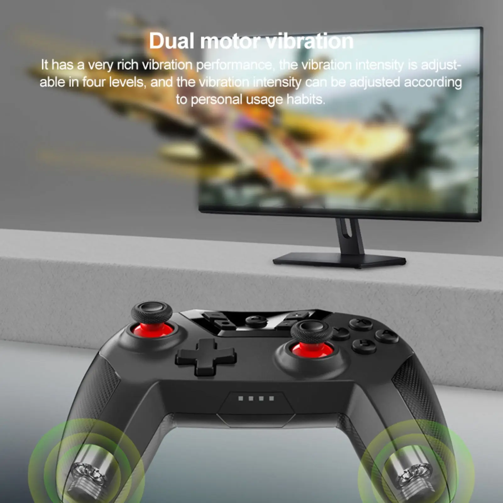 Оснащен двумя двигателями, он обладает высокой производительностью вибрации, а интенсивность правды регулируется на четырех уровнях. Поддерживает один ключ пробуждения вашей консоли переключателя, решить Проблемные шаги разблокировки экрана.