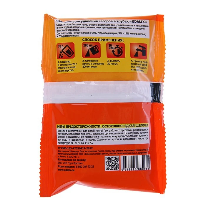 Средство для удаления засоров в трубах Udalix, 70 гр 3713946