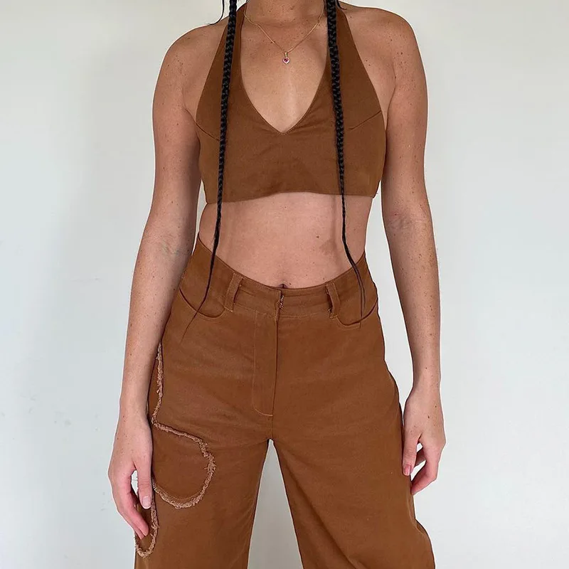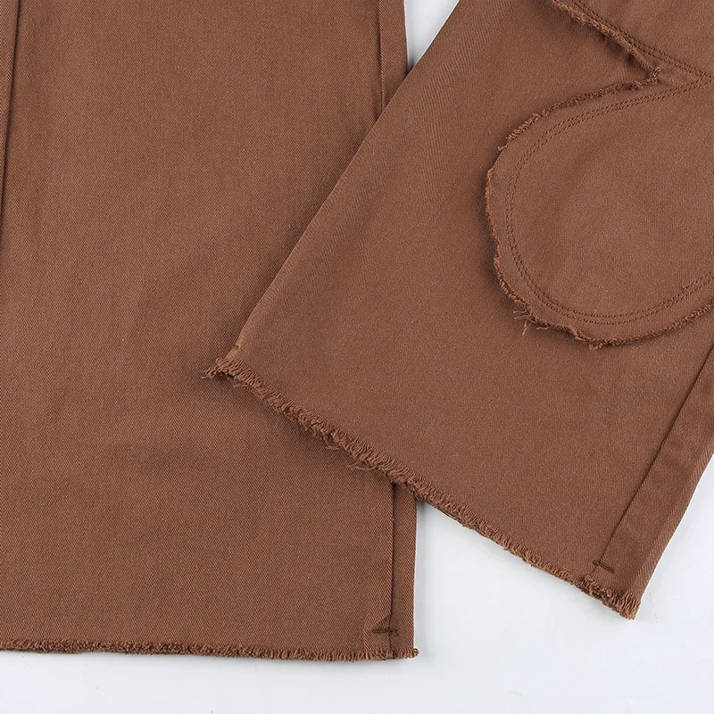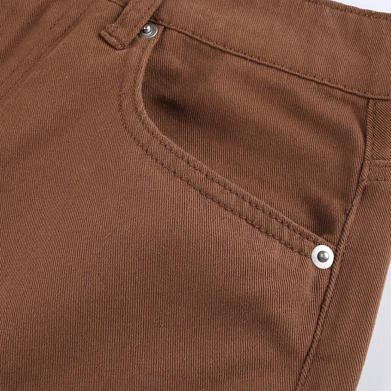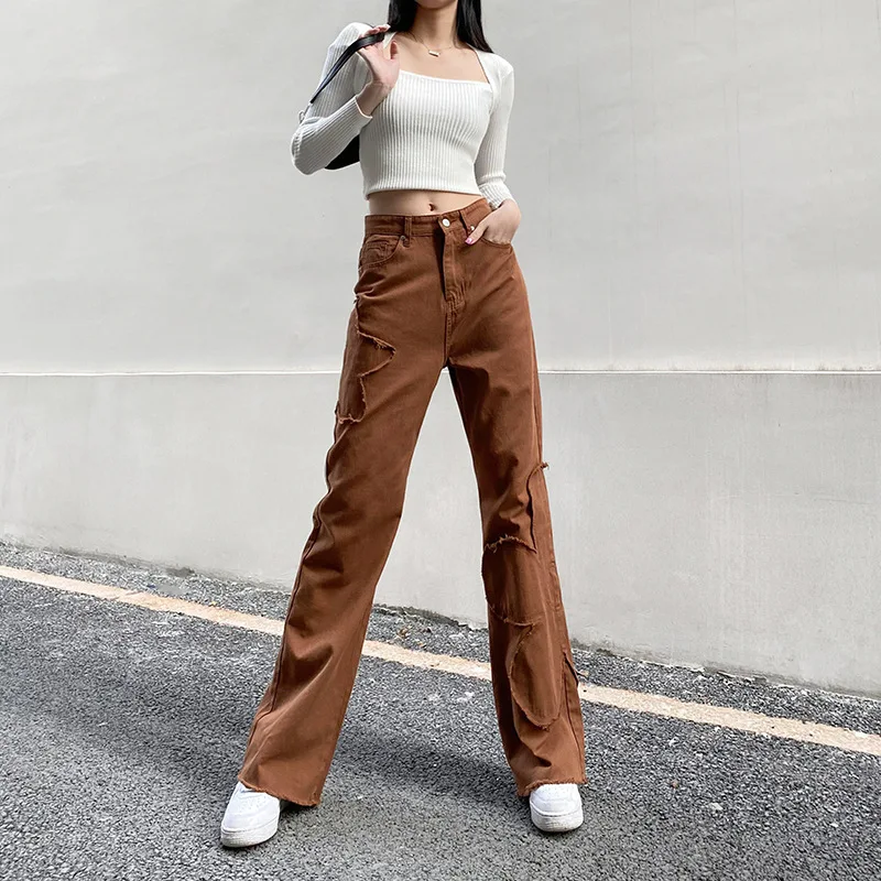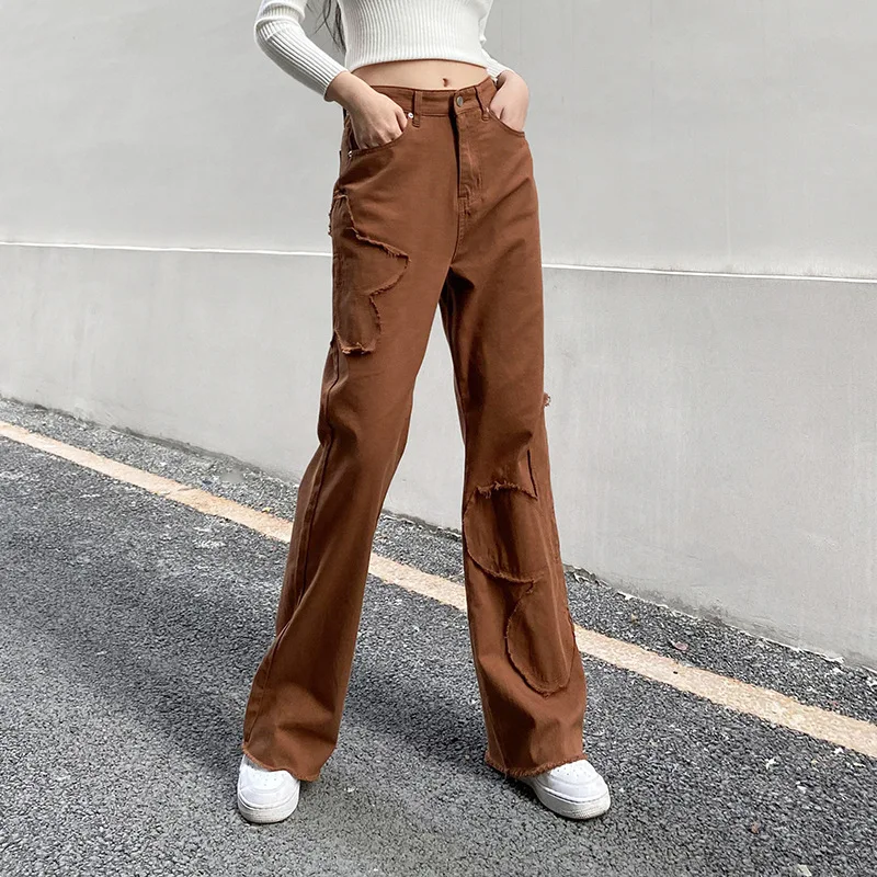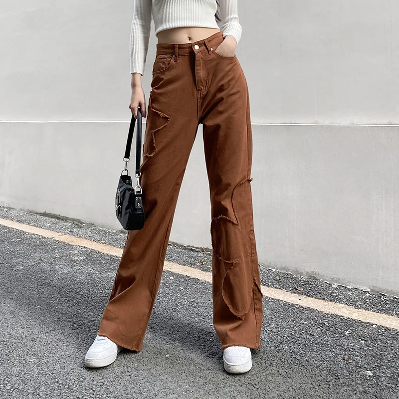 Y2K уличные брюки карго для женщин 90s коричневый винтажный цветочный принт сплайсинга свободные средняя талия Harajuku модные прямые джинсовые брюки