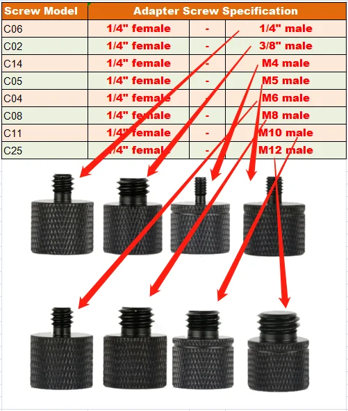1/4 "Женский до 1/4" Мужской, 1/4 "Женский до 3/8" Мужской, 1/4 "Женский до M5 мужской, 1/4" Женский до M6 мужской, 1/4" Переходник «Мама» на «папа» М8, «Мама» на «папа» М10, «мама» 1/4 дюйма на «папа» М12 металлические переходные винты для штатива Magic Arm Camera DSLR аксессуары для фотостудии, Крепления и подставки для микрофона.