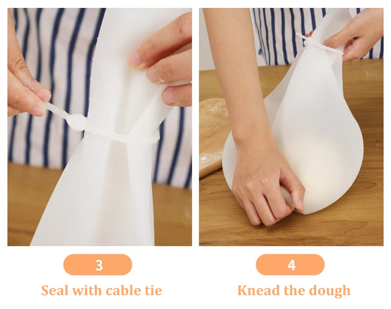 2. Хорошая прочность, силикон пакет для замешивания может выдерживать температуру от (- 40 ° C) до (220 ° C). Пакет можно поместить в холодильник или морозильник, а также использовать с горячей жидкостью, такой как горячее молоко или воду.