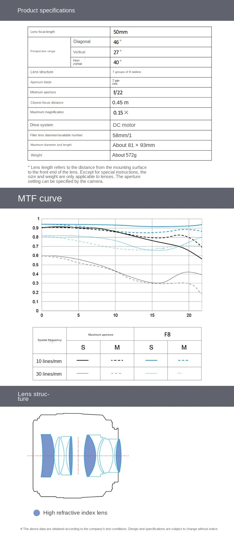 Этот объектив встроен с электромагнитной апертурой, которая поддерживает режим съемки M/Av/Tv/P/B.