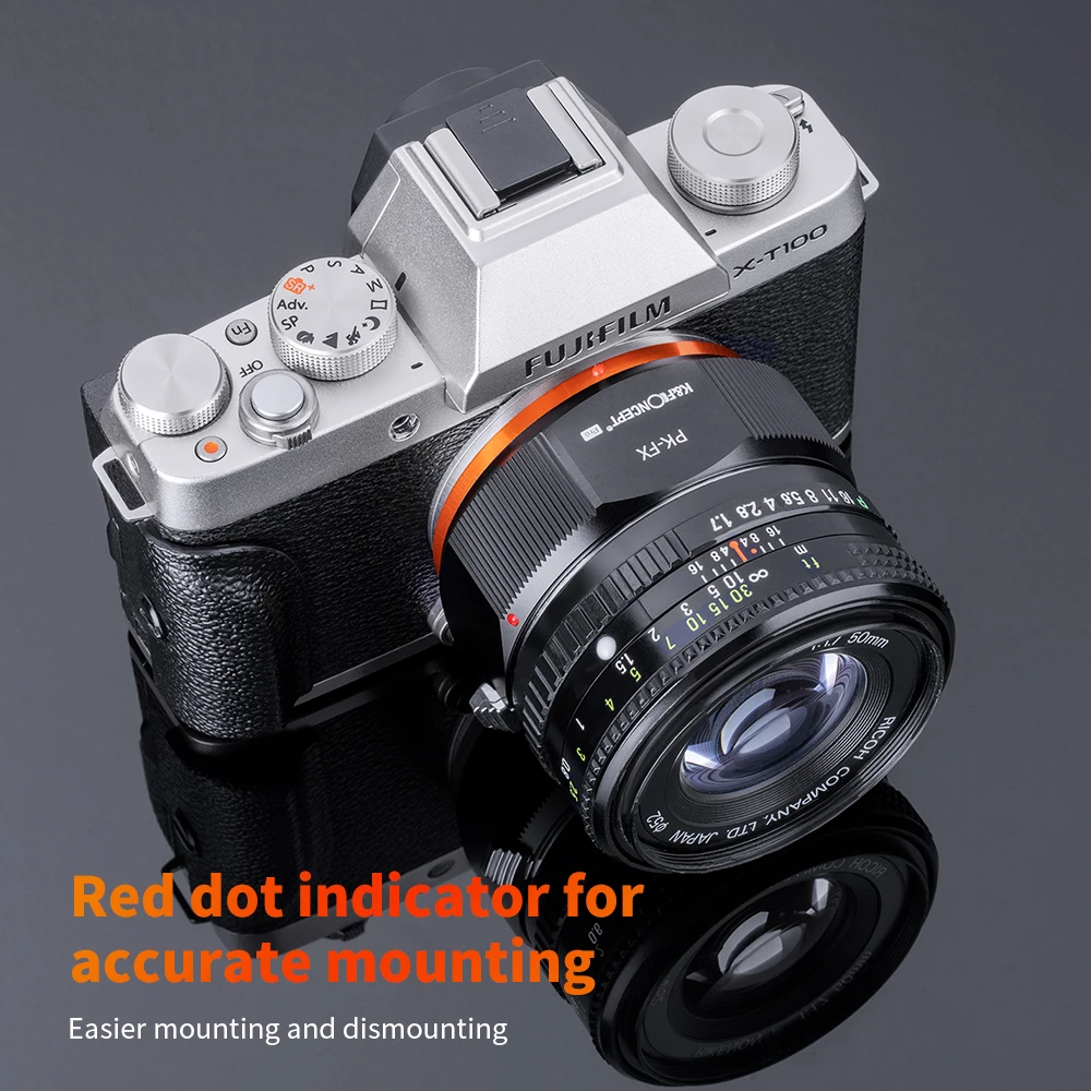 • Позволяют объективам крепления Pentax K, используемым на корпусе камеры Fujifilm X. • Совместимость с камерой Fujifilm включает в себя: Fuji X-A1, X-A2, X-A3, X-E1, X-E2, X-E3, X-M1, X-Pro1, X-Pro2, X-S1, X-T1, X-T10, X-T2, X-T20, X10, X20, x30, XF1, XQ1, XQ2 и т. Д. • Изготовлен из латуни и алюминия. Стабильная, точная и прочная конструкция. Управляется вручную. Возможность фокусировки на бесконечности. • Для тяжелых линз среднего формата, мы предлагаем использовать с телекронштейном и штативом, чтобы сбалансировать его вес при съемке.