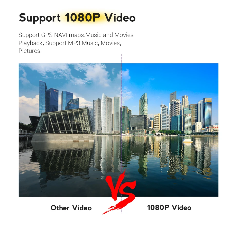 1080P видео декодер, истинный цвет 24 HD-дисплей. Поддержка идеального 3D ускорения воспроизведения музыки позволяет свободно проигрывать видео в любом разделе USB/SD.