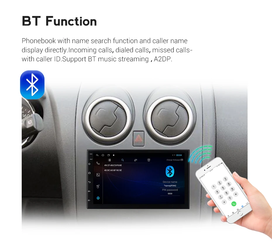 Поддержка синхронизации телефонной книги, громкой связи и потоковой передачи музыки с вашего телефона, возможность передавать Spotify и Pandora с телефона через Bluetooth, чтобы наслаждаться миллионов песен, которые вам нравятся.