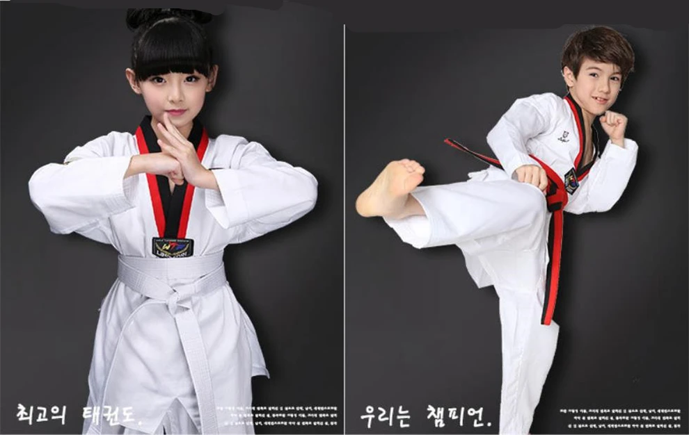Белая форма для тхэквондо, для детей, для взрослых, тхэквондо, добок с ремнем, спортивный костюм для занятий спортом, дзюдо, костюм для каратэ, ТКД, добок