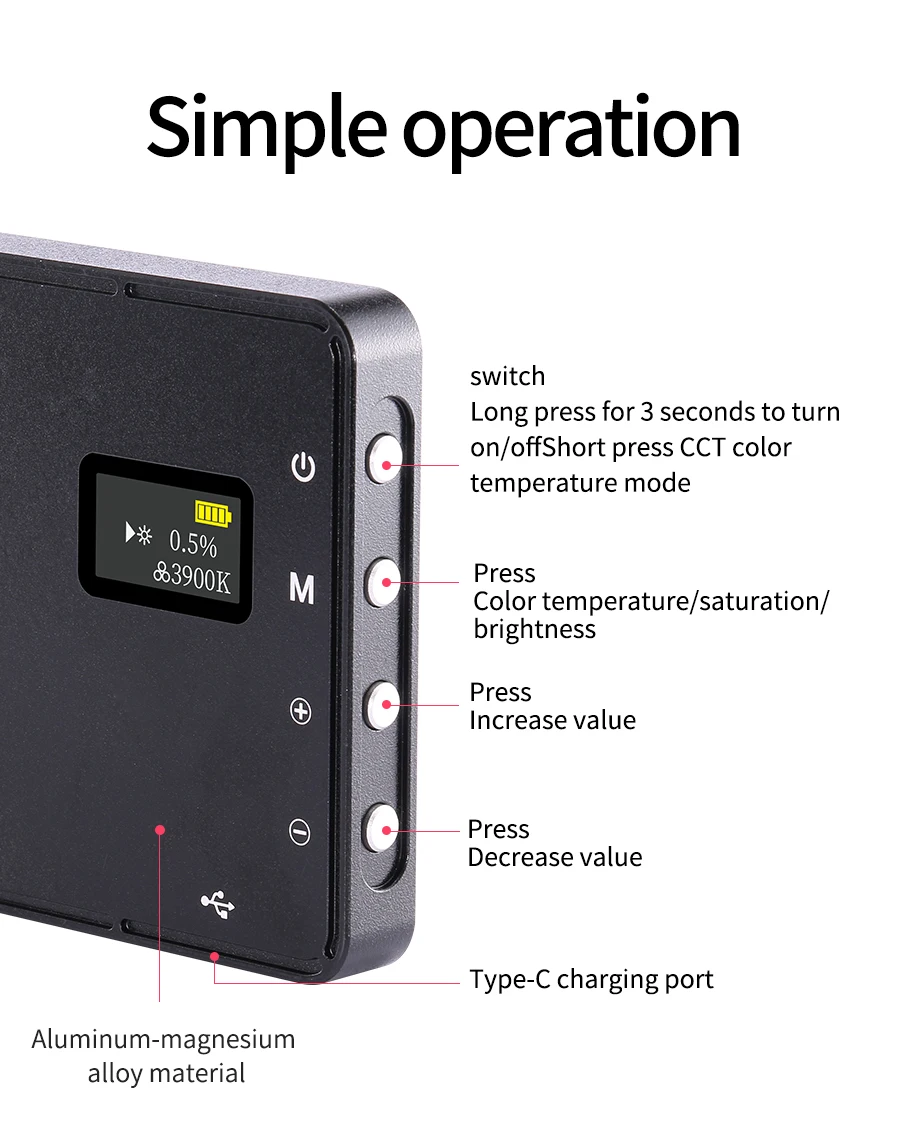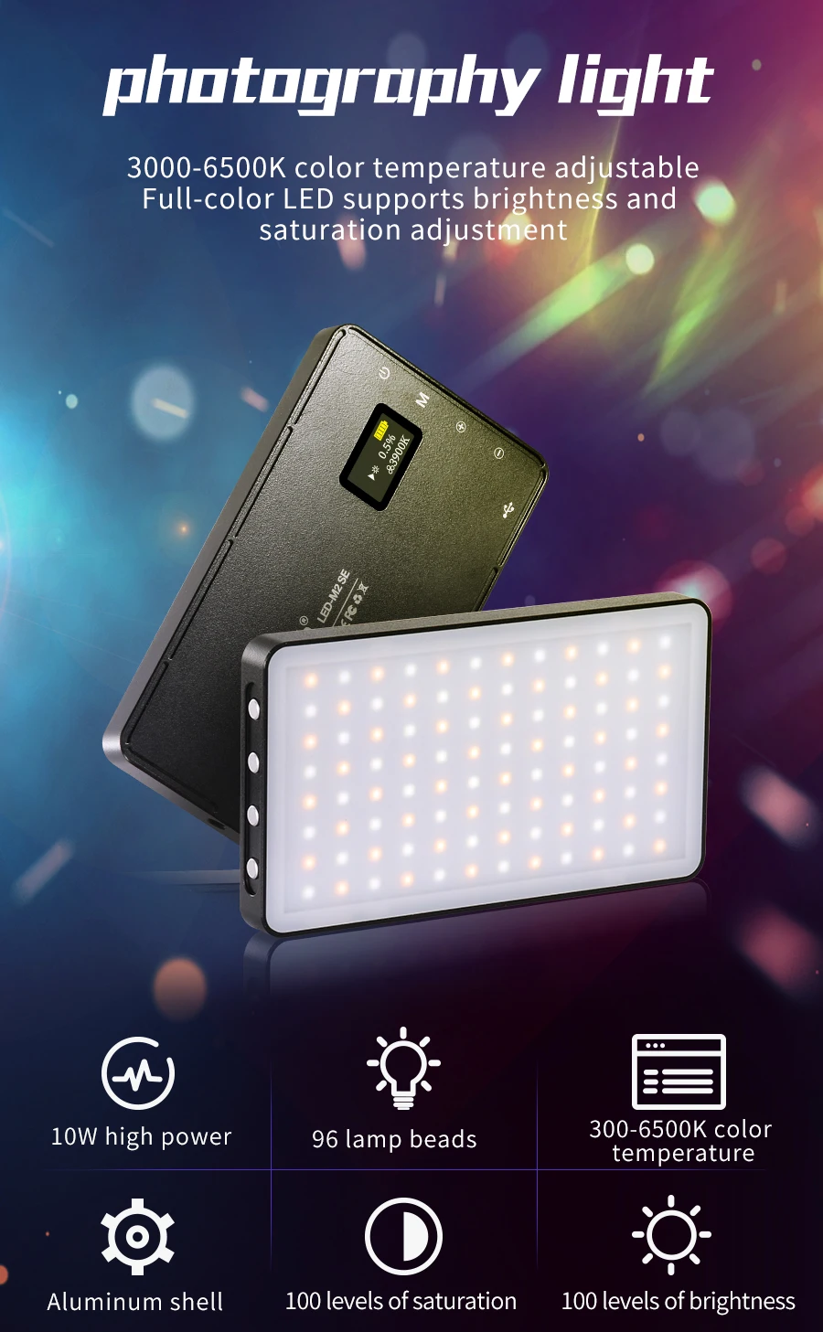 3000-6500K Цветовая температура регулируемая, полноцветный светодиодный индикатор поддерживает яркость и насыщенность adjstment.