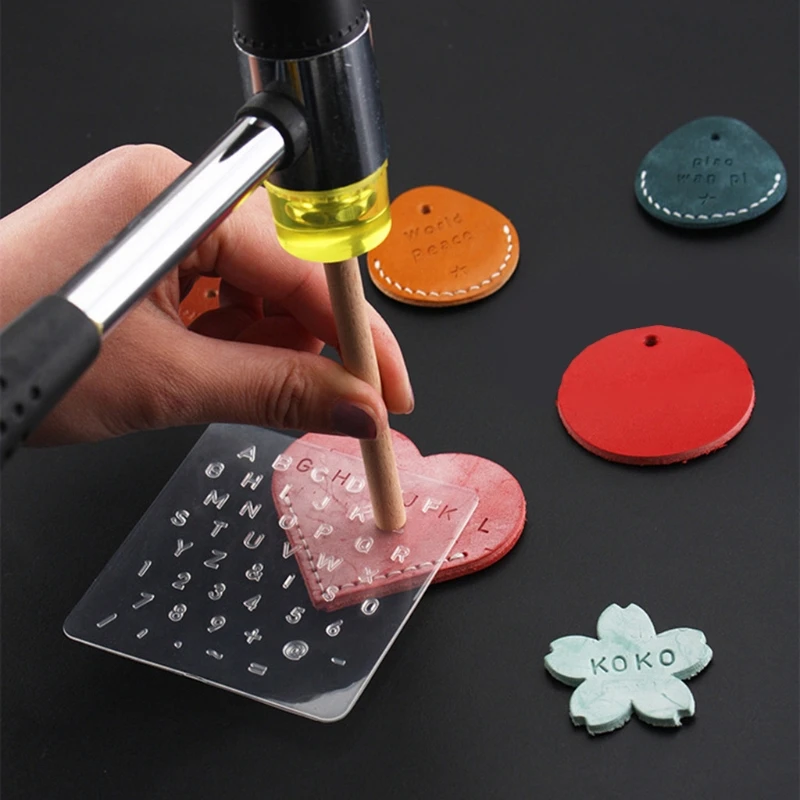 3 шт./компл. набор для тиснения кожи, в том числе 26 прописных букв, 26 строчных букв, 1 ручка для тиснения.