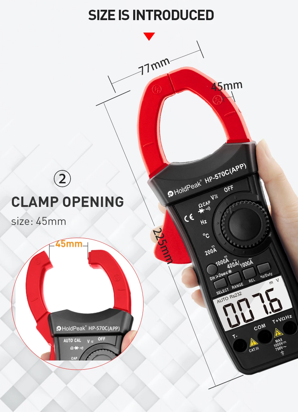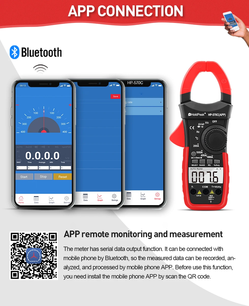 ⚡【Цифровой зажим переменного и постоянного тока Multitester】 4000 отсчетов авто-диапазон AC/DC ампер зажим мультиметр Измерение переменного/постоянного тока, переменного/постоянного напряжения, сопротивления, емкости, звуковой сигнал непрерывности, температуры, диод и частота (Гц), рабочий цикл, хранение данных. ⚡【Bluetooth APP Clamp Ammeter】 Автоматическая пара с телефоном на базе Android / IOS, поддержка чтения измерений в реальном времени максимум/мин/среднее, с графикой времени и кривой. И сохраните измерения в файлах TXT/Excel для регистрации данных ⚡【AC/DC Индуктивный зажим Amp Meter】Neat яркая подсветка ЖК-дисплей дисплей, большой челюсти Калибр Размеры 1,77 дюйм (ов). Убедитесь, что перед зажимом нажмите «REL» до нуля, иначе счетчик покажет номера смещения без провода в зажимах из-за магнитного поля. ⚡【Точное напряжение амперации Meter】 разрешение 0.1A для 0,1 ~ 400A AC DC amp, 1A для 400A ~ 1000A для поддержки точного чтения ампер для низкого и высокого тока. Идеальный Бесконтактный Амперметр для устранения электрических проблем в автомобильной, бытовой, HVAC, автомобильной лодке ⚡【Зажмите провод в режиме реального времени для переменного тока DC Amp test】для измерения усилителя с помощью любого зажимного измерителя, вы должны отделить Горячие и нейтральные проводники или Они отменят друг друга и дадут нулевое чтение усилителя. Наиболее удобным способом без отшелушивания шнура является зажим на линии переменного тока сплиттер