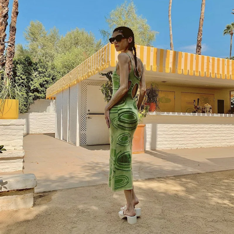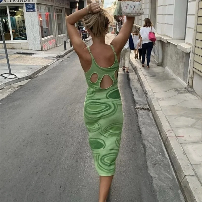 Женское летнее пляжное платье House Of Party, открытое трикотажное платье на бретельках Y2K, сексуальное облегающее платье с узором пейсли
