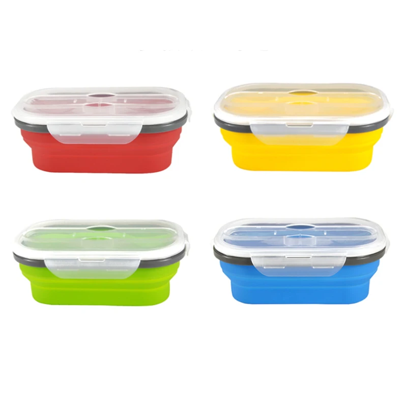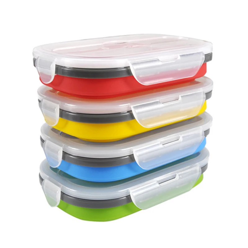 Силиконовый Ланч-бокс, портативная чаша, цветная складная коробка для еды, Ланч-бокс