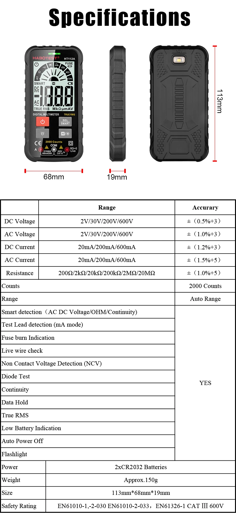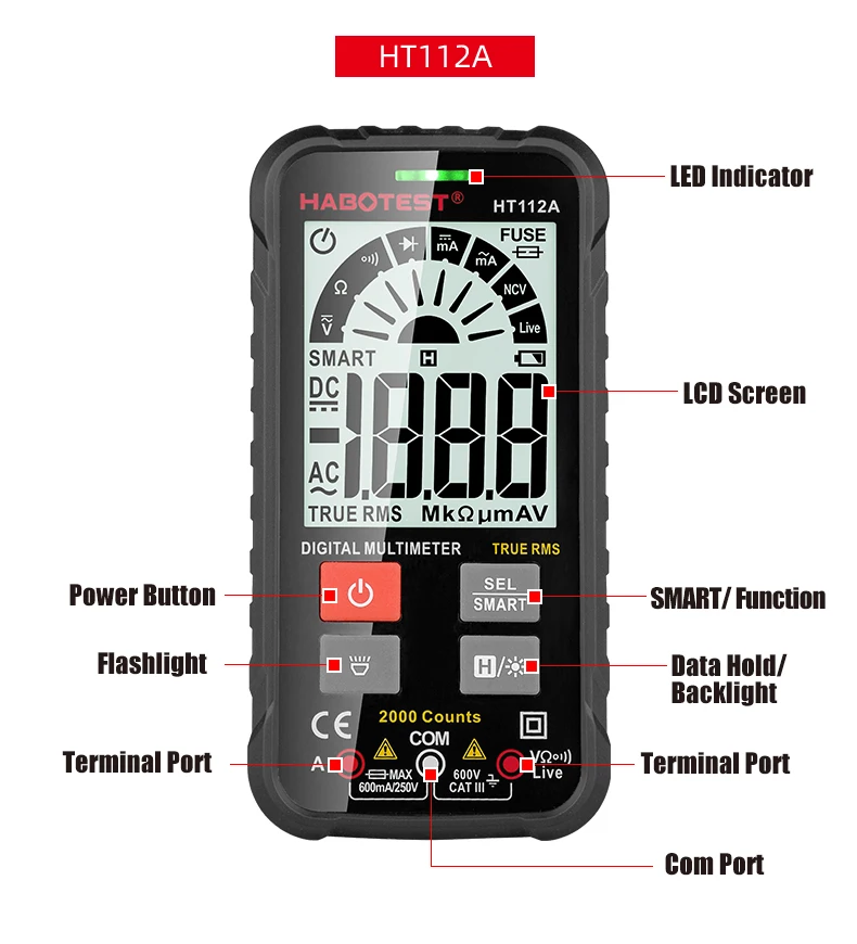 Высокая точность профессиональный умный мультиметр Мини Цифровой Автомобильный Мультиметр 600 В DC AC тестер напряжения Электрический измеритель HT112A