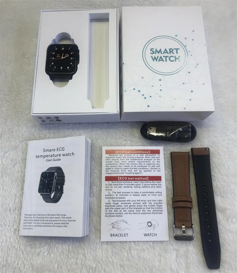 ЭКГ Spo2 Смарт-часы для мужчин для женщин цифровые наручные часы 1,7 дюймов крови Давление кислорода тела Температура Smartwatch для Ios и Android