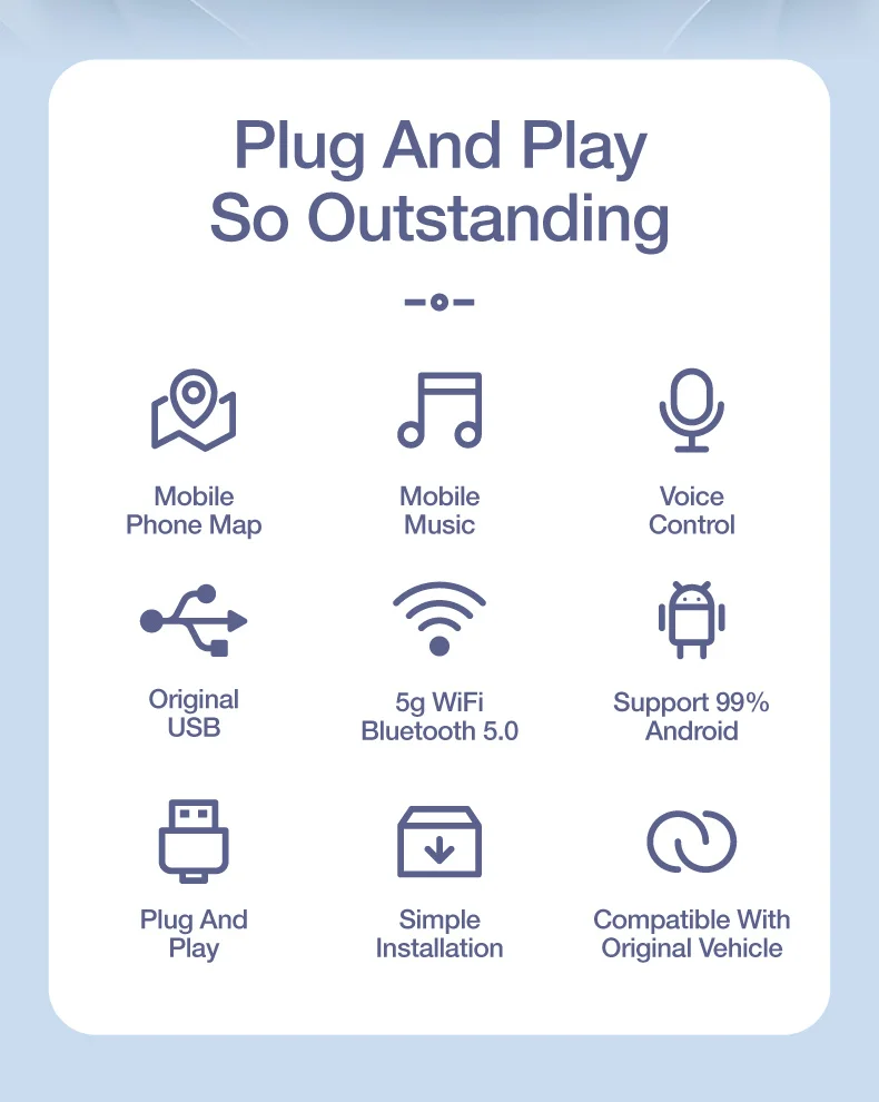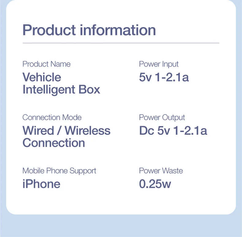 Автоматически записывает соединение и автоматически входит в систему Apple Carplay, чтобы вы могли быстрее путешествовать на один шаг (совместимость зависит от фактического эффекта)