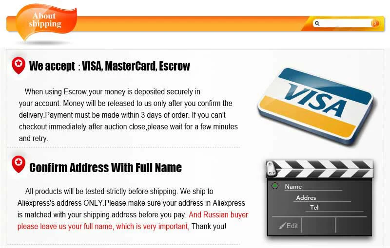 3,Russian Federation Buyer Pay Attention Please! Please offer receiver's full real name in the order.