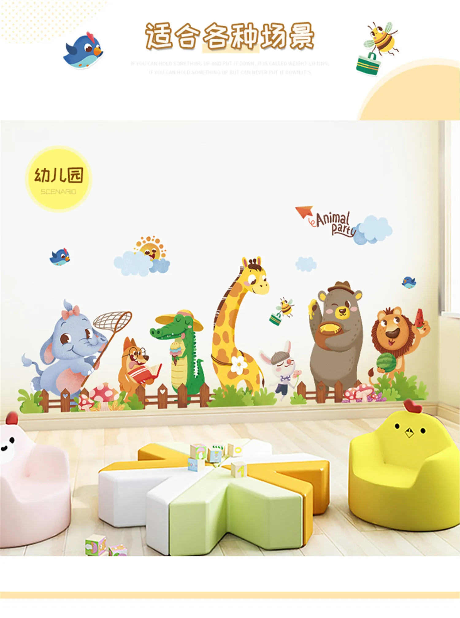 Настенные наклейки для мальчиков 5 до 7 лет, детские комнаты, животные, детские обои Декорации для комнаты, аксессуары для спальни для девочек
