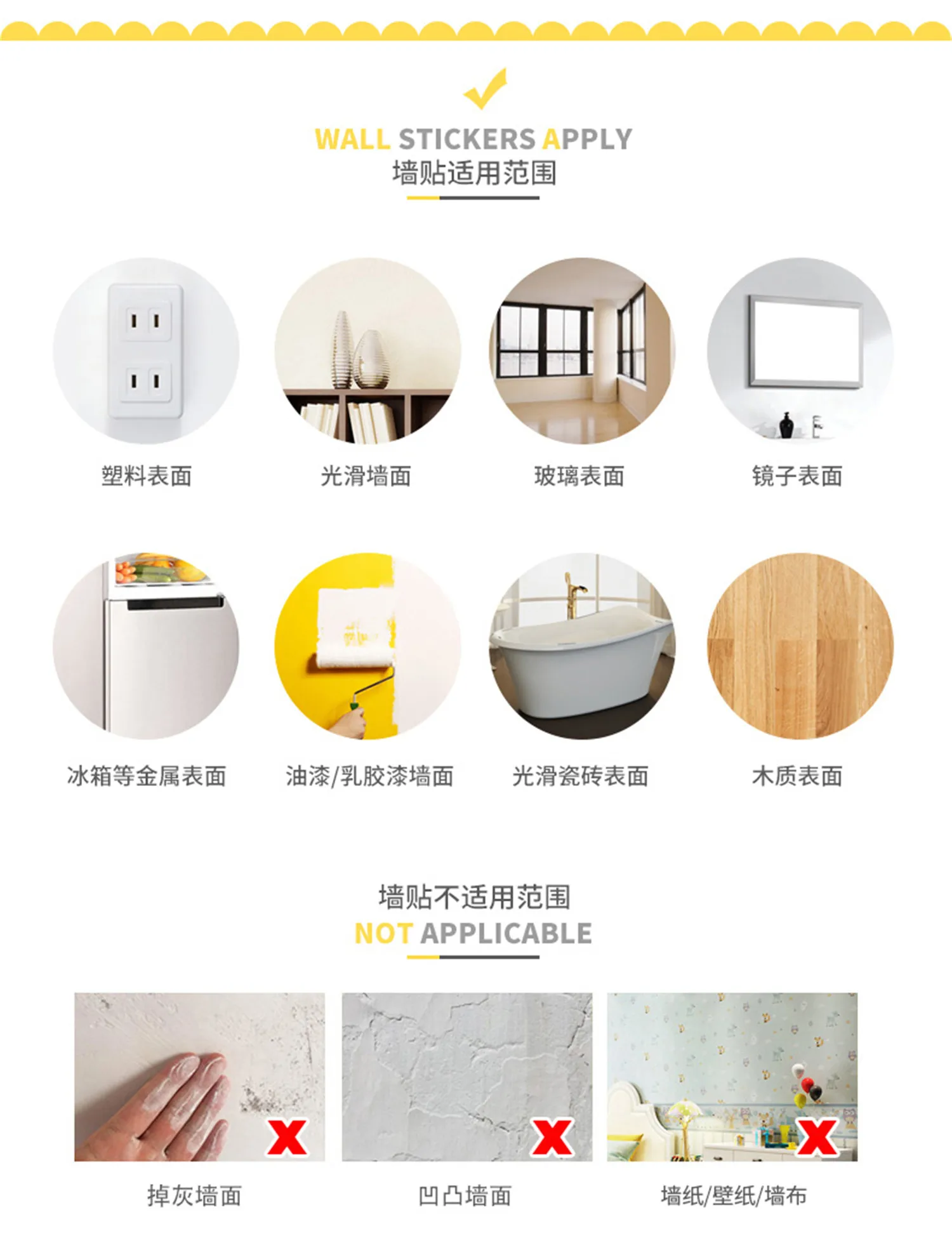 Пожалуйста, убедитесь, что поверхность гладкая и чистая, не грязная или грубая, иначе наклейка может упасть.