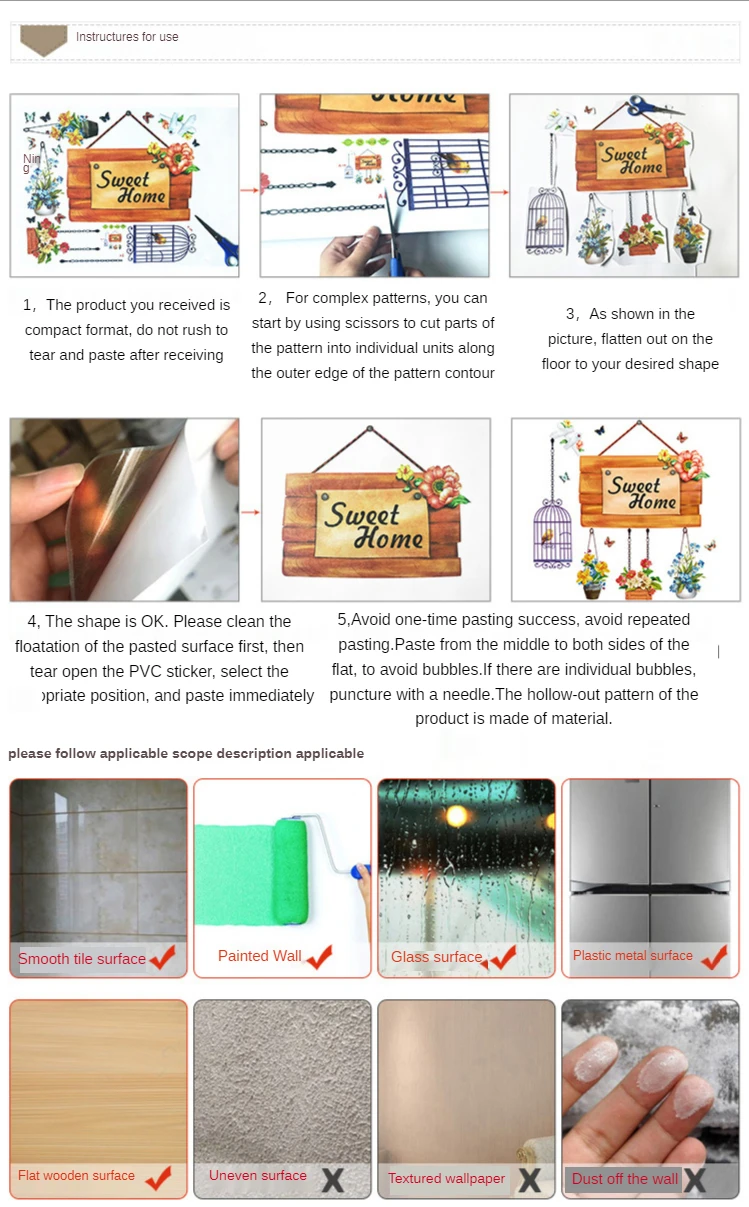 1, 100% brand new and high quality 2, Material: high quality translucent matte pvc 3, This is the translucent sticker, please apply it on the pure color wall 4,This sticker is self-adhesive sticker, you can just peel it off and put it on any place you want