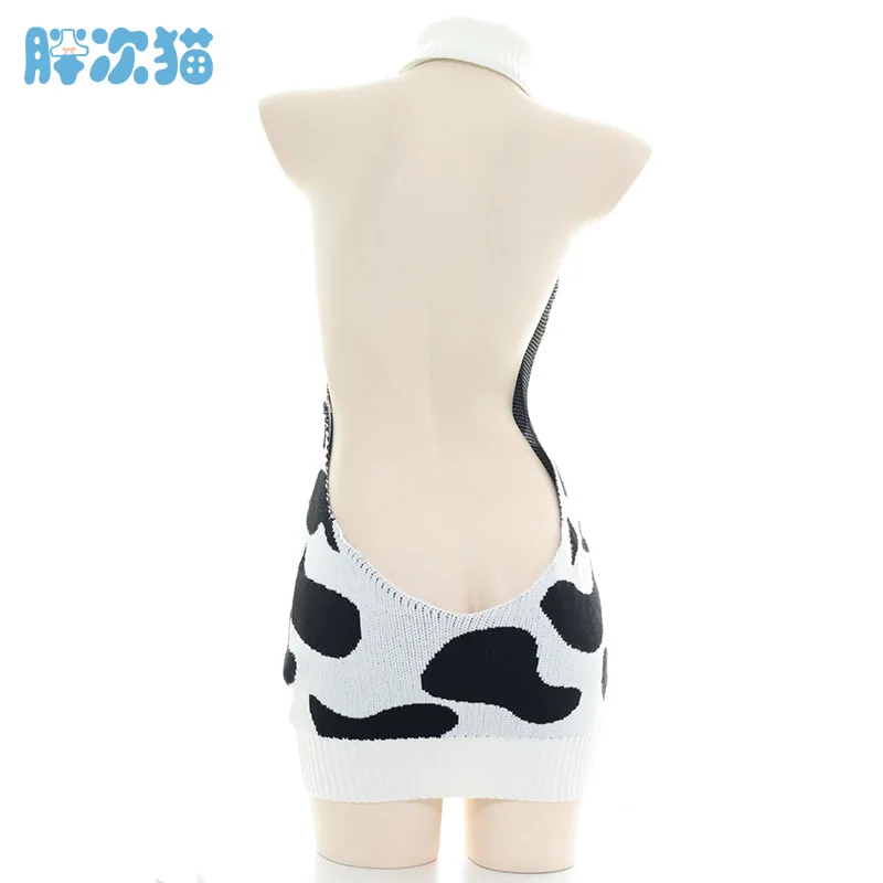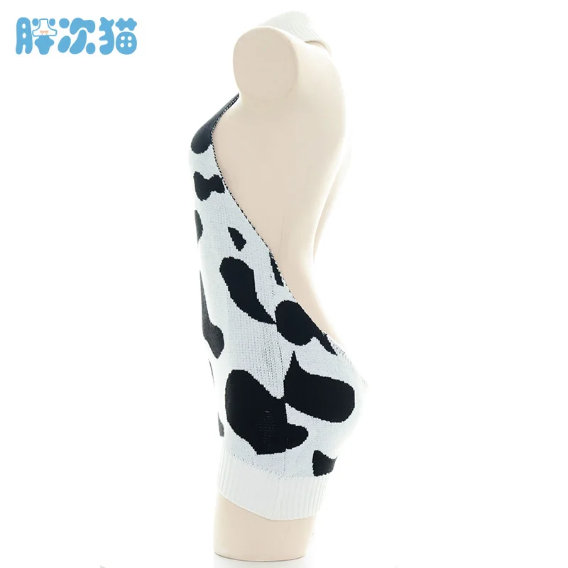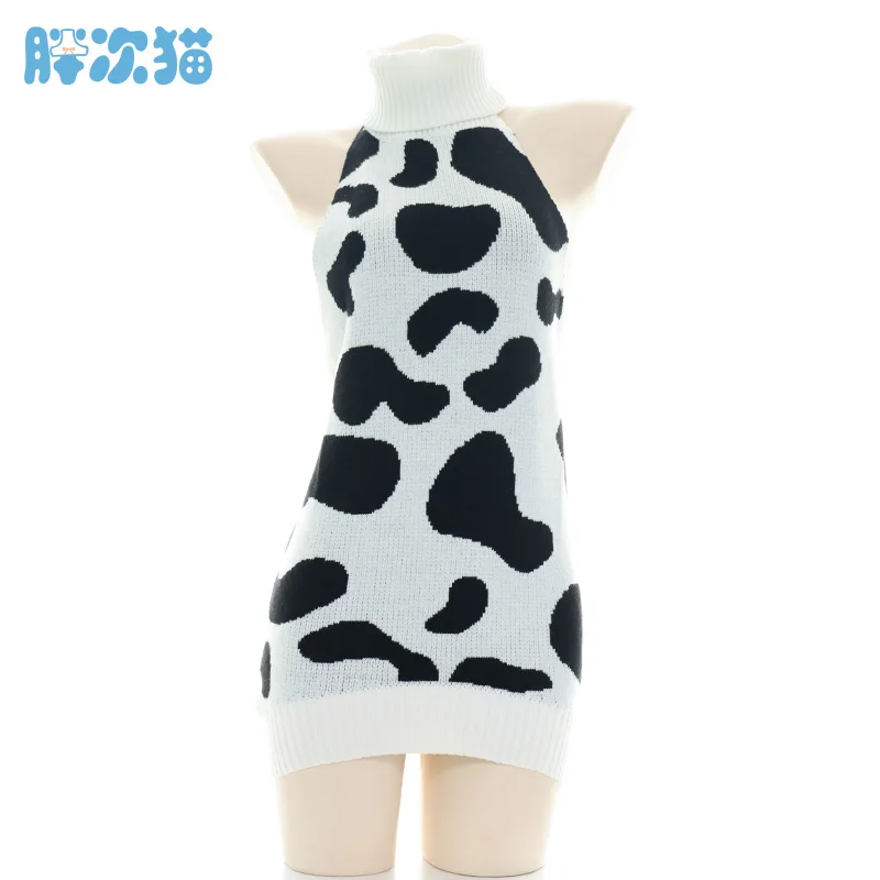 Милое Платье для косплея из аниме «Корова» для девочек, сексуальные вязаные свитера без рукавов с открытой спиной и открытыми плечами, пуловеры с высоким воротником, топы, оптовая продажа