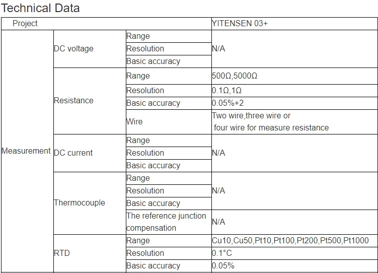 Pt200 / Pt500 /Pt1000 / Cu10 / Cu50) измерения и сопротивление (400Q / 40000).