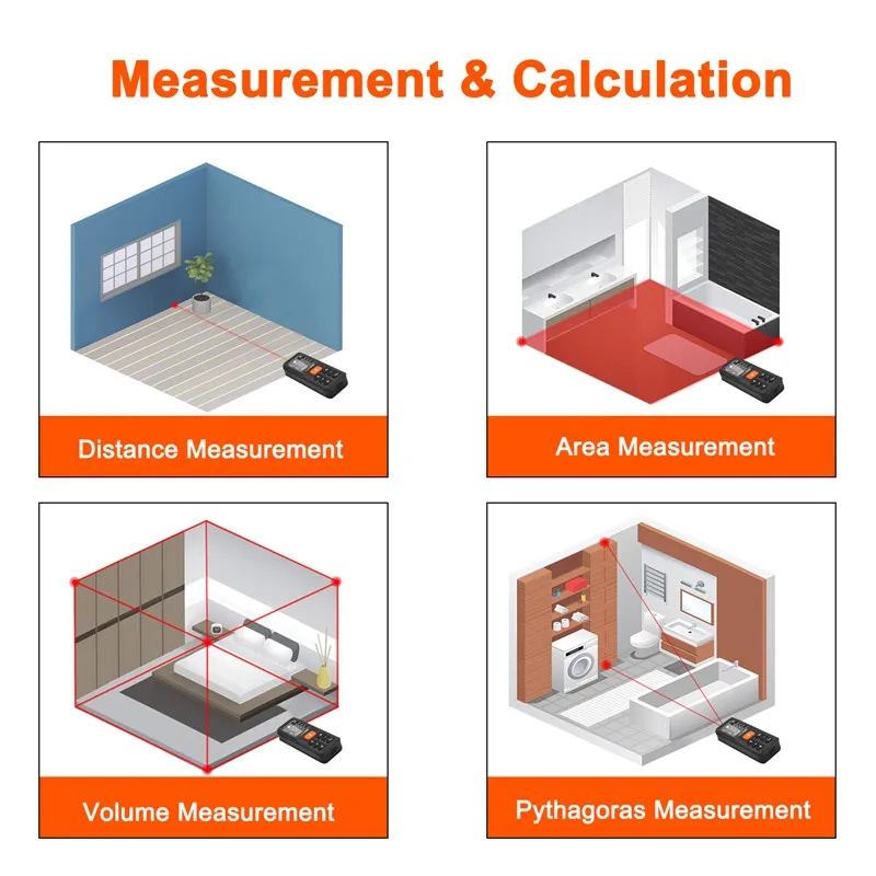 New Digital Tilt Laser Distance Meter 70m 120m Handheld Rangefinder Electronic Leveling Angle Finder 99 Sets Data Tape LOMVUM