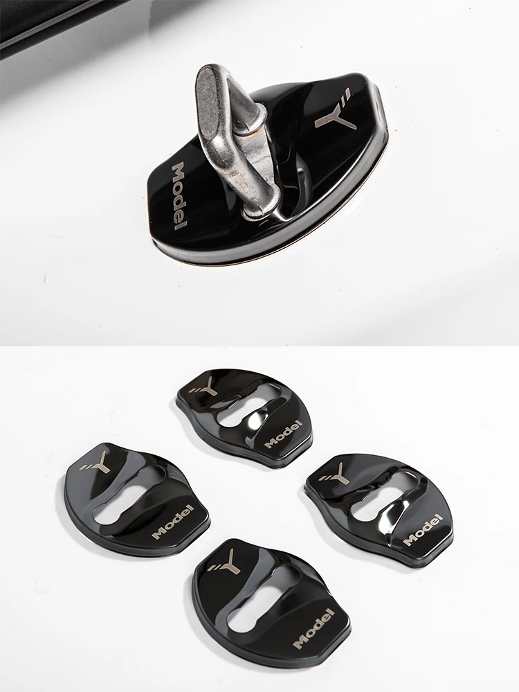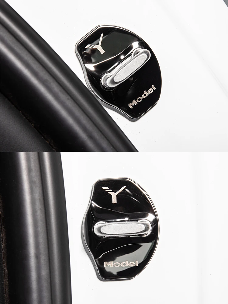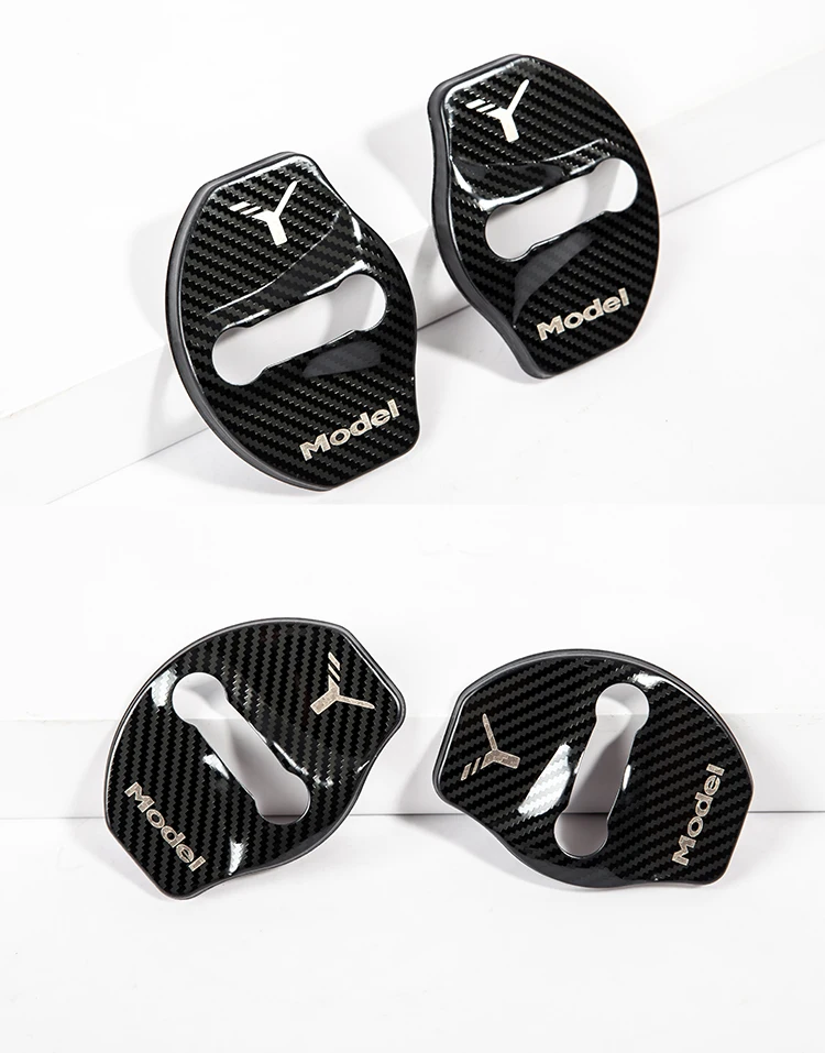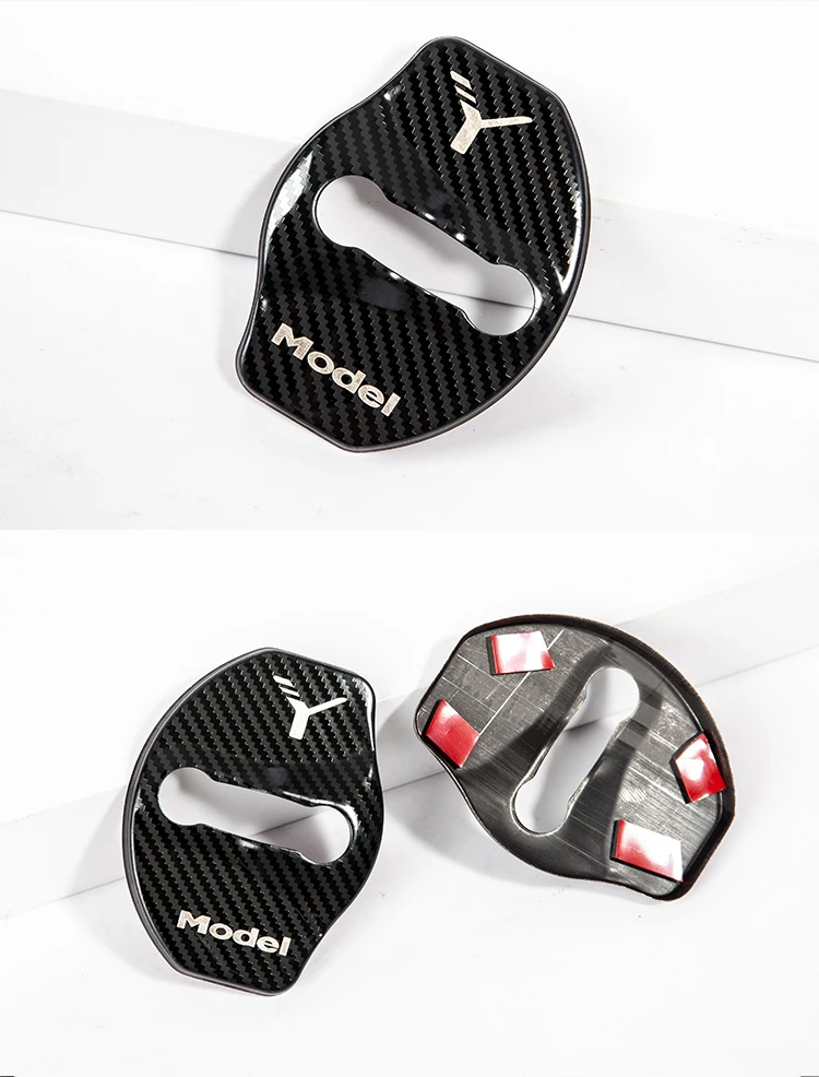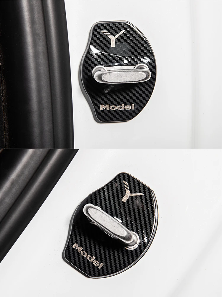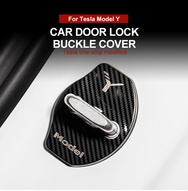 Крышка для пряжки дверного замка модели Y для Tesla Model Y 2021, аксессуары, дверной замок, металлическая наклейка из углеродного волокна, автомобильное украшение
