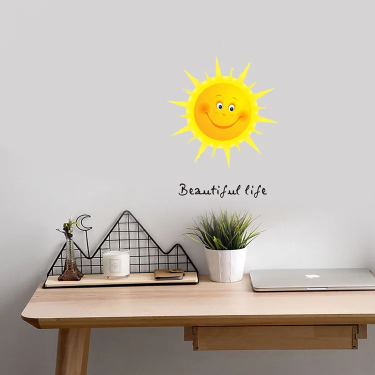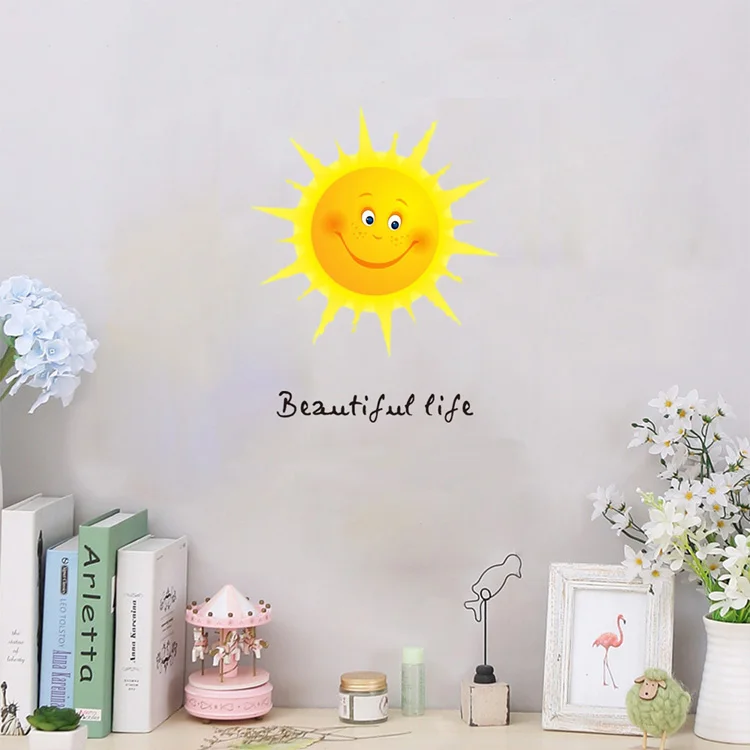 Мультяшная Наклейка на стену солнцеРазмер товара: 30 см * 30 смРазмер только для ознакомления. Размер Вы сможете свободно регулировать.Материал:Экологически чистый ПВХ************************************************** *************************Характеристики продукта:Экологически безопасныйСъемный, водонепроницаемый,Защита от плесениДвухсторонние графические узоры;Не оставляет следовМожно наносить на любые гладкие и чистые поверхностиТакие как стены, двери, окна, шкаф и т. д.Украсьте свой дом, добавьте в него романтикиСтарайтесь не размещать повторно.НЕ подходит для загрязненных или шероховатых поверхностей![]()