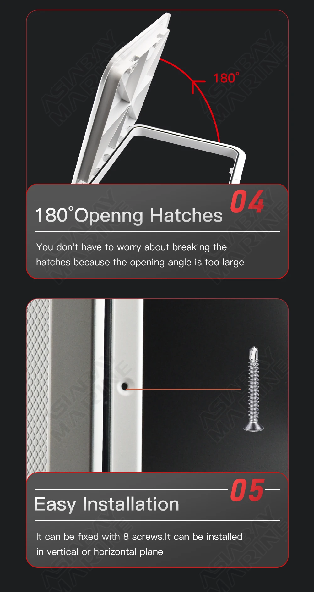 3. Low profiles hatch, designed for installation on internal or external flat surface.