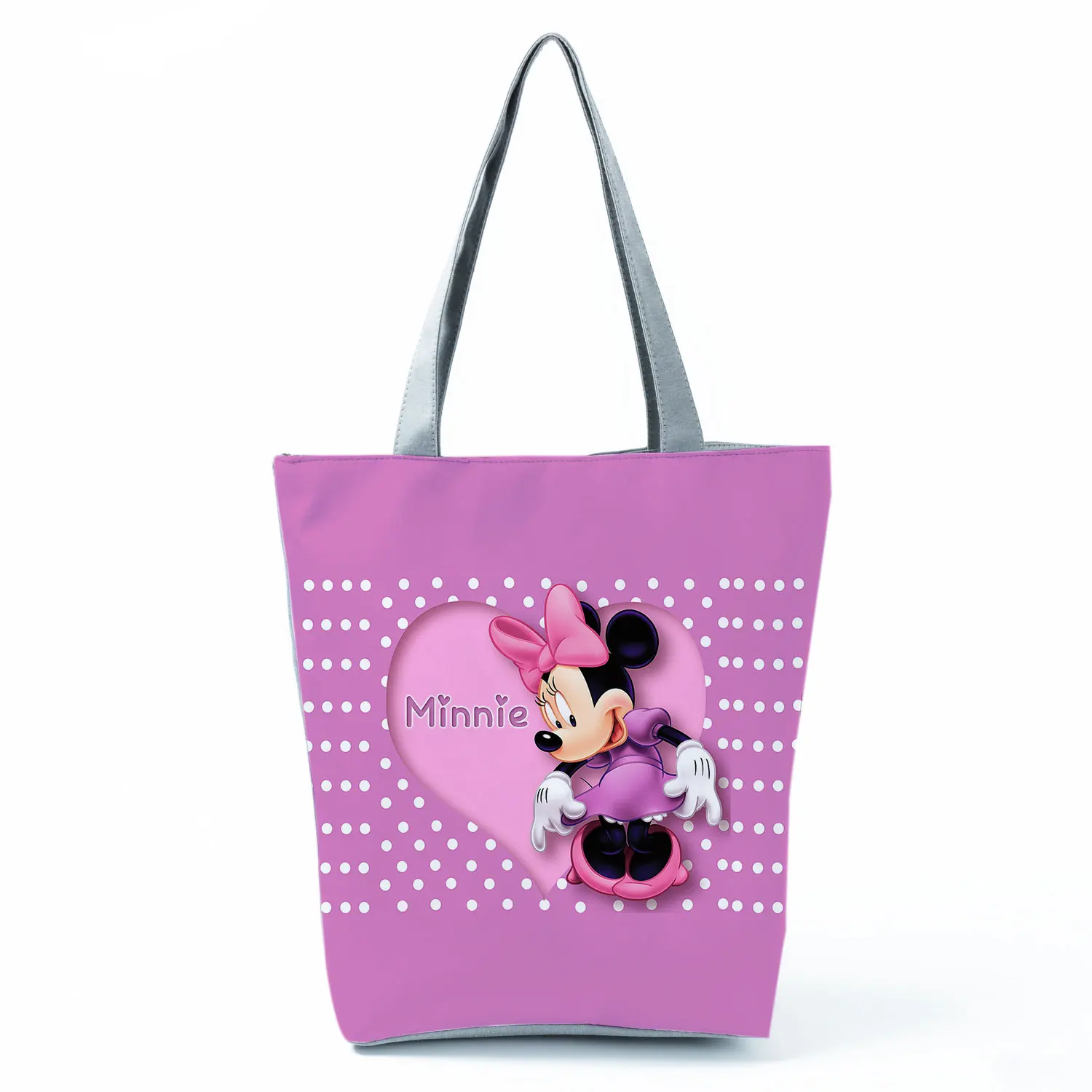 Сумка с мультипликационным принтом Disney Minnie, фиолетовая вместительная сумка через плечо с мультипликационным принтом, многоразовая сумка для покупок, повседневная женская сумка-тоут