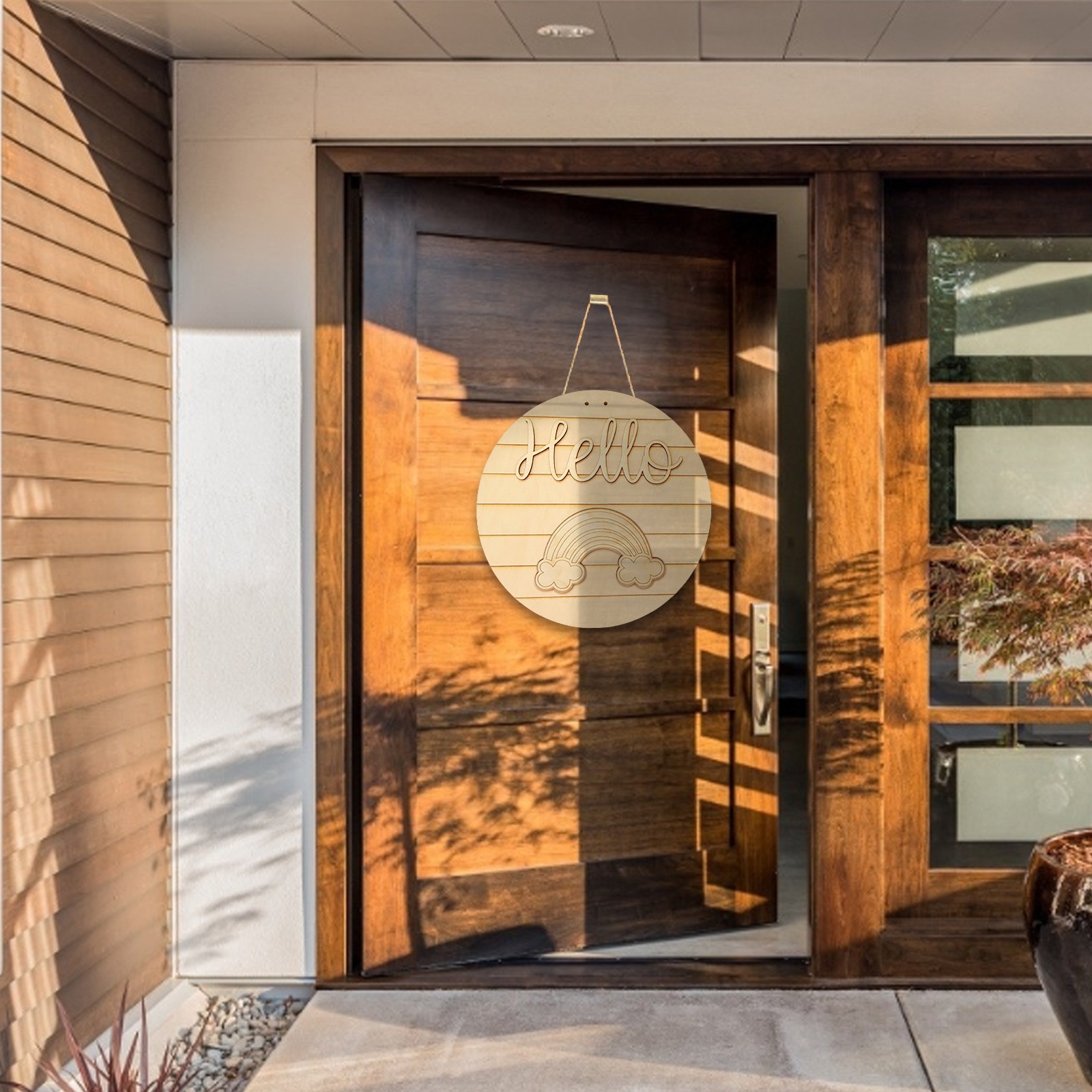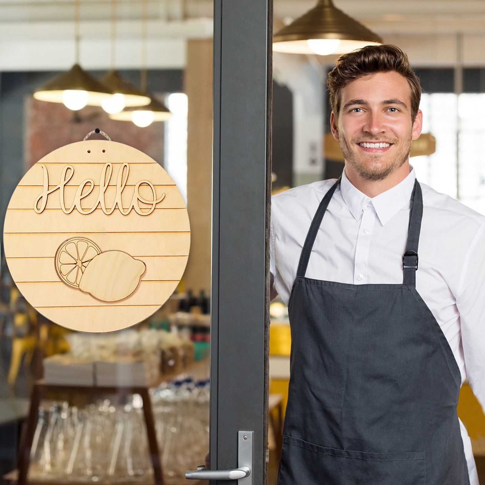 - Логотип Двери кружится в кафе, ресторанах, офисах и бизнесе. Таким образом, каждый сезон и фестиваль наполнены праздничной атмосферой, и его также можно использовать в качестве идеального подарка на новоселье для друзей. Это деревянное украшение крыльца идеально подходит для большего количества мест