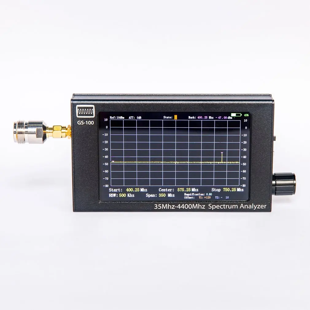 Особенности: 1. Портативный анализатор спектра использует научные настройки работы, и конструкция ВЧ-входа с левой стороны удобна в использовании для подключения фидера. 2. Анализатор спектра оснащен профессиональным адаптером n-типа SMA и разъемом N/SMA-KJ, который совместим со всем профессиональным оборудованием. 3. Улучшенный интерфейс питания USB, используя новый интерфейс type-c с более высокой производительностью и более сильным сочетанием 4. В оболочке спектрального анализатора используется алюминиевая одноразовая профессиональная оболочка, которая красива и имеет хорошую производительность. 5. Анализатора спектра использует 4,3-дюймовый ЖК-дисплей цветной экран, который является четким и профессиональный. Описание: В анализатора спектра управляется с помощью stm32f407 однокристальный, 4,3-дюймовый ЖК-дисплей цветной экран, все-алюминиевый сплав оболочки и вращающийся регулятор. Характеристики: Основной материал: алюминиевый сплав + металл Экран Размер: 4,3 дюймов, 480*800 Диапазон отображения спектра: 35 м-4400 МГц Входное сопротивление: 50 Ω RBW: 10 кГц, 50 кГц, 100 кГц, 200 кГц, 500 кГц, в общей сложности 5 передач можно регулировать Точки сканирования экрана: 700 точек Диапазон сканирования: 7 м (10 кГц), 35 м (50 кГц), 70 м (100 кГц), 140 м (200 кГц), 350 м (500 кГц) Максимальный сигнал доступа: 10 дБ Режим работы: Супергетеродинный анализатор спектра развертки, время одиночной развертки составляет 800 мс Размер: 160*75*22 мм/6,2*3 * 0.8in Вес: 270g/5,2 oz Посылка включает в себя: 1 * анализатор спектра 1 * usb-кабель Type-C 1 * SMA N / SMA-KJ