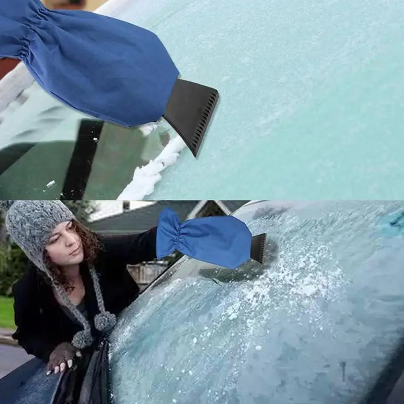 Автомобильный скребок для льда для лобового стекла, Водонепроницаемый скребок для снега с флисовой подкладкой, съемные перчатки-синий