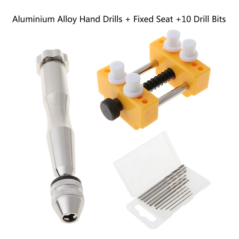 12 шт. ручные сверла Ювелирные Инструменты Набор штифтов тиски для литья смолы формы стальная ручная дрель с 10 шт. сверла и фиксированный держатель 85LB