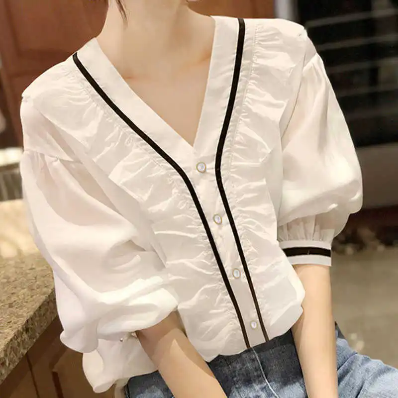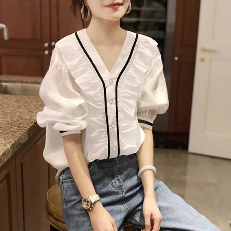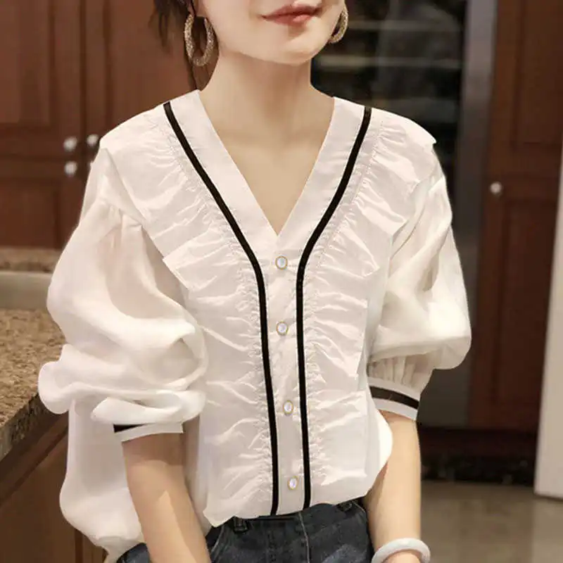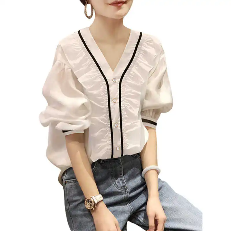Новинка 2021 белая рубашка Женский дизайн чувственный нишевый шифон Модный