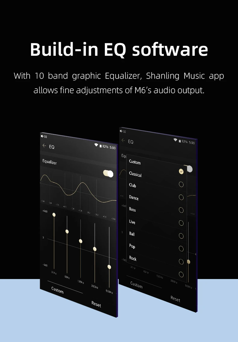 Двухсторонняя Bluetooth, встроенный 10-полосным эквалайзером