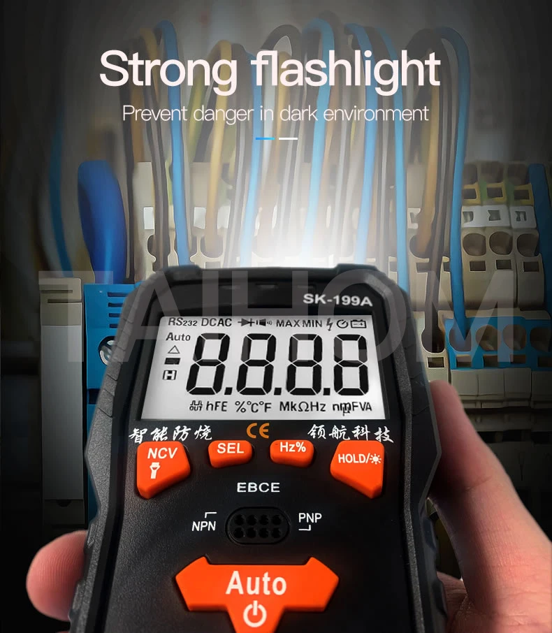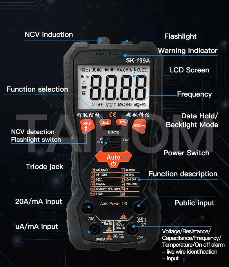 Цифровой мультиметр Taihom, умный конденсатор с автоматическим диапазоном, тестер электрического напряжения, Бесконтактный индикатор напряжения, Гц, частотомер с фонариком хранения данных