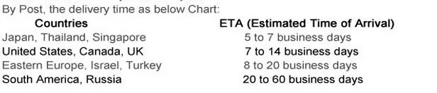 Или EMS, который является быстрым и безопасным. Всегда DHL, срок доставки составляет около 5 дней.