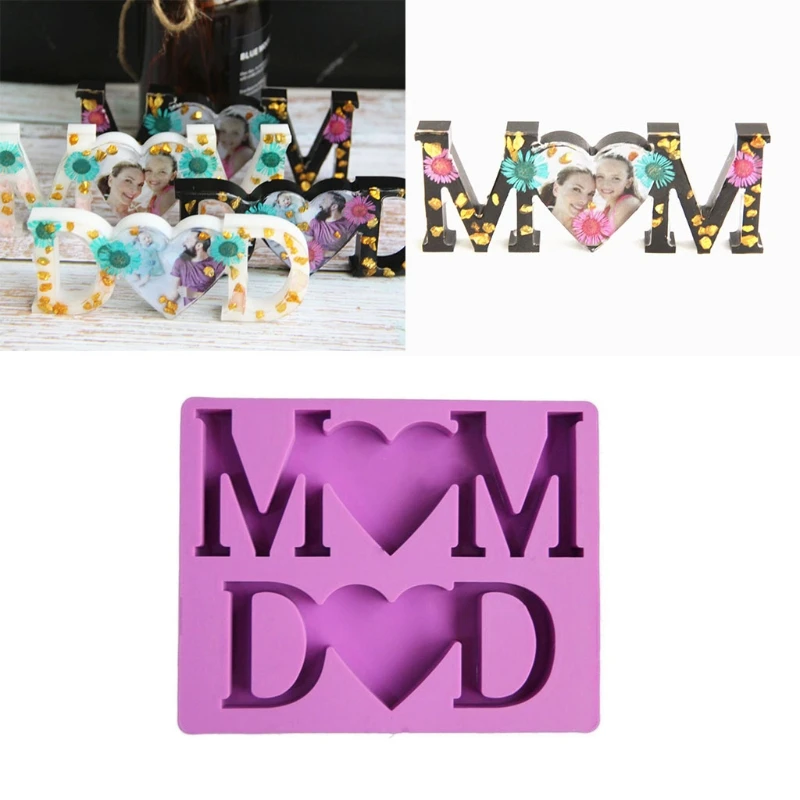 Фоторамка с надписью для мамы, папы, литья из смолы, форма для Дня отца, Дня матери, силиконовые формы из смолы для декора стола, комнаты, W8KF