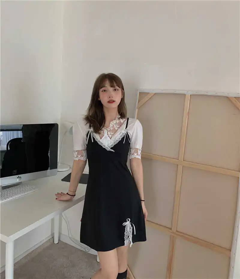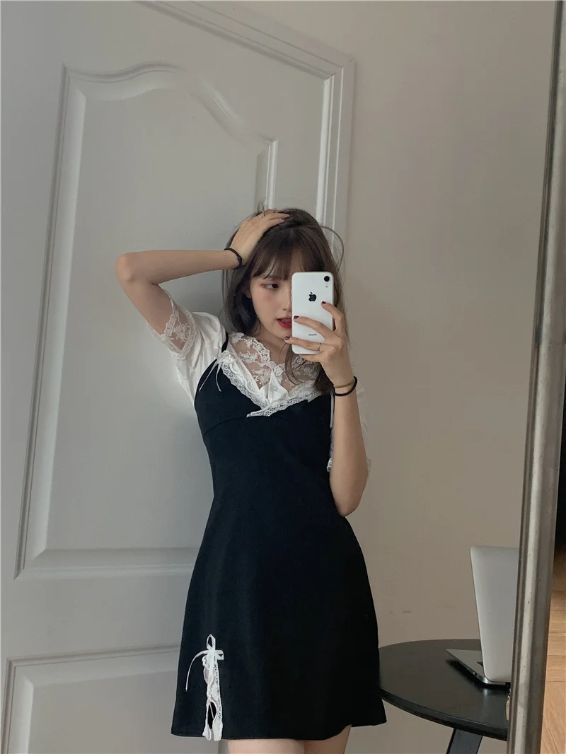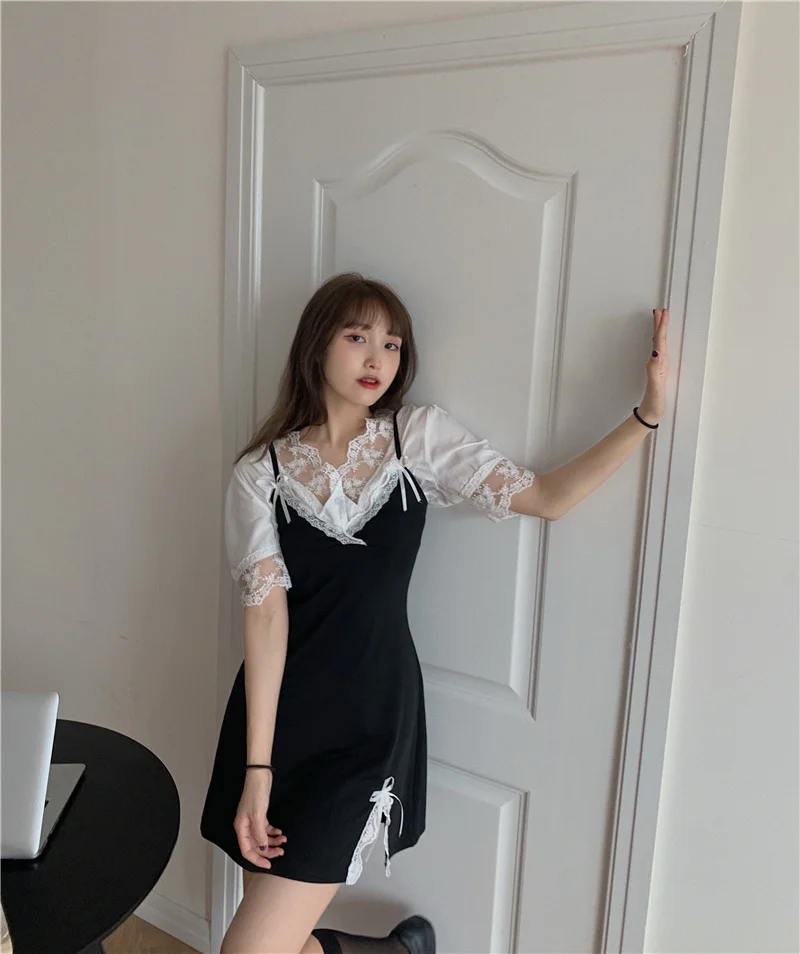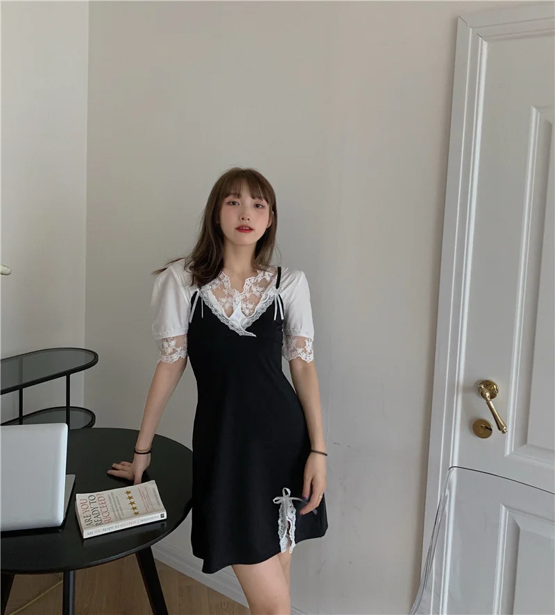 Корейский шикарный Летний милый элегантный кружевной комплект в западном стиле