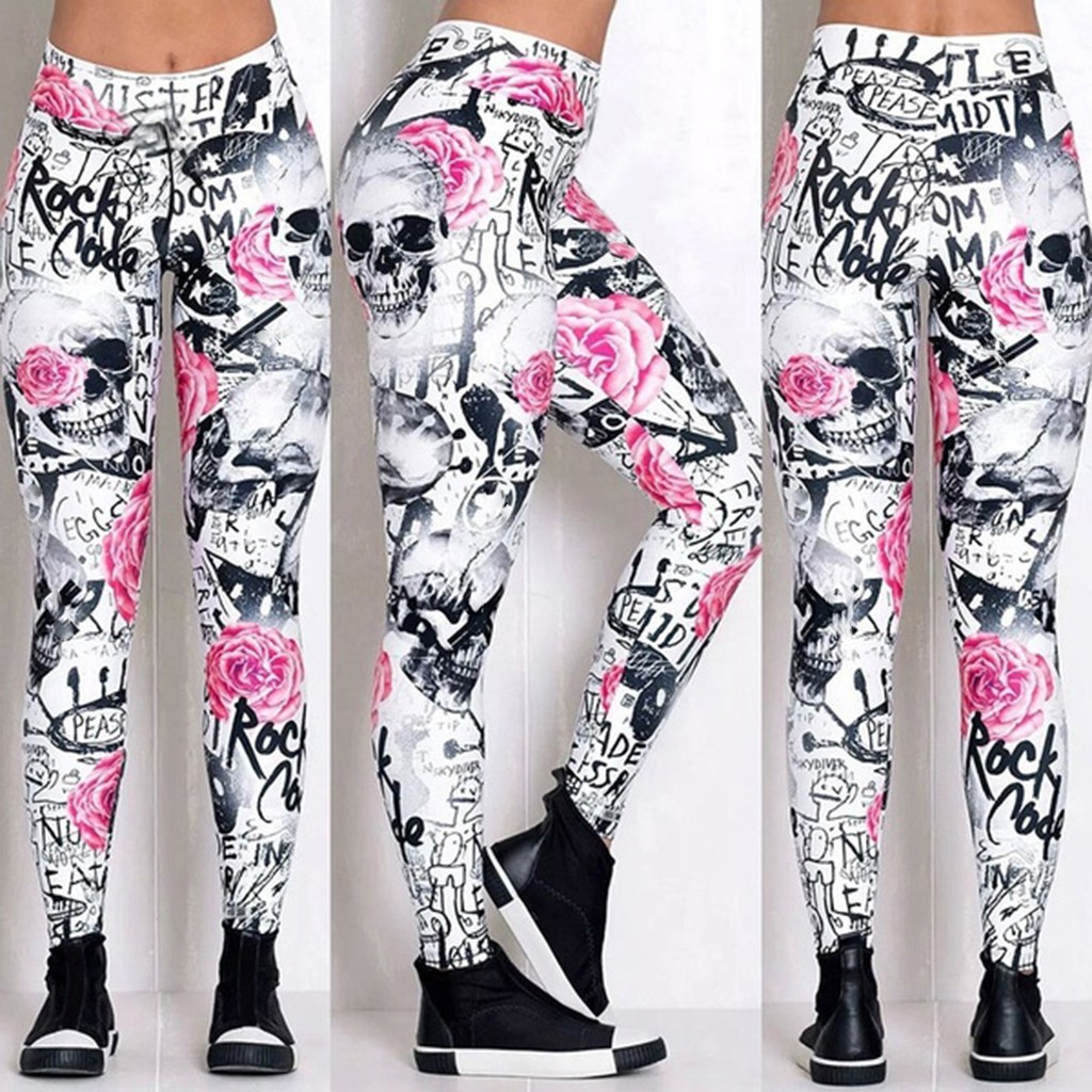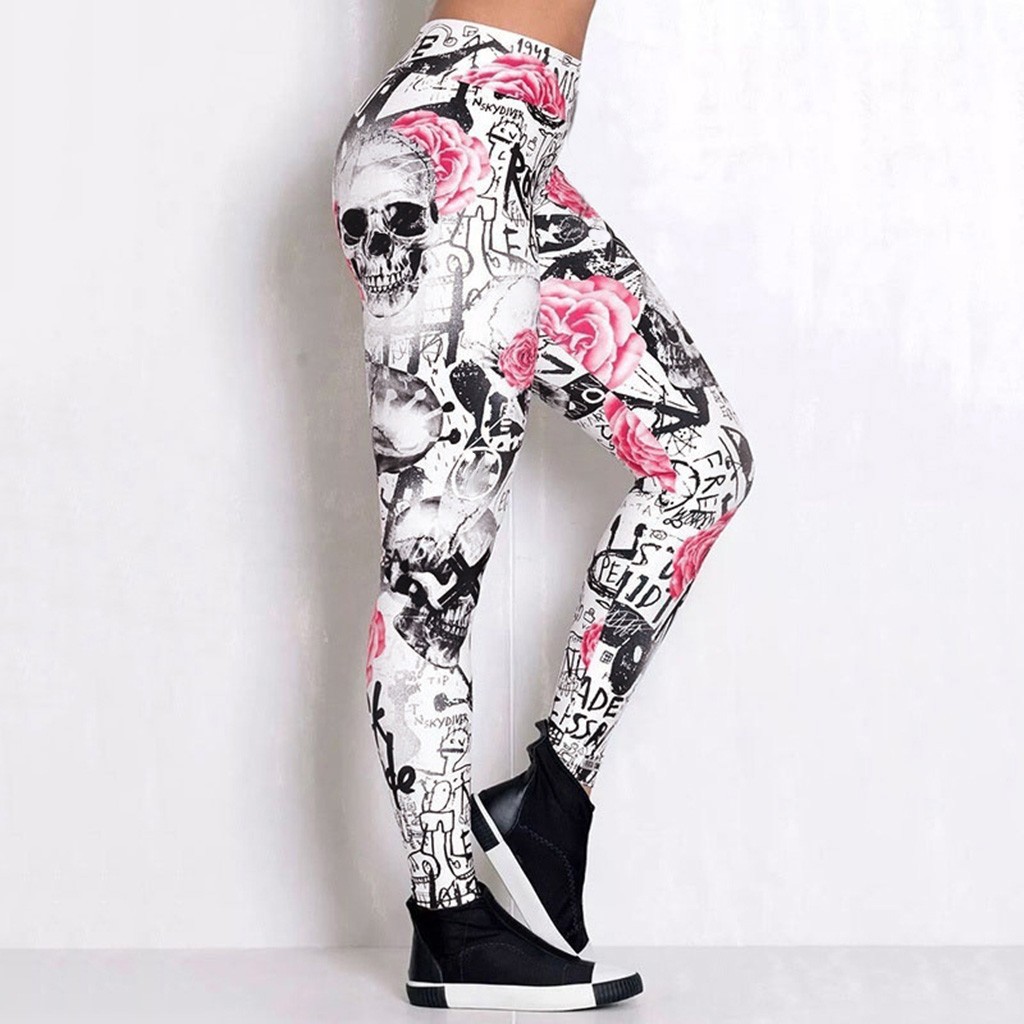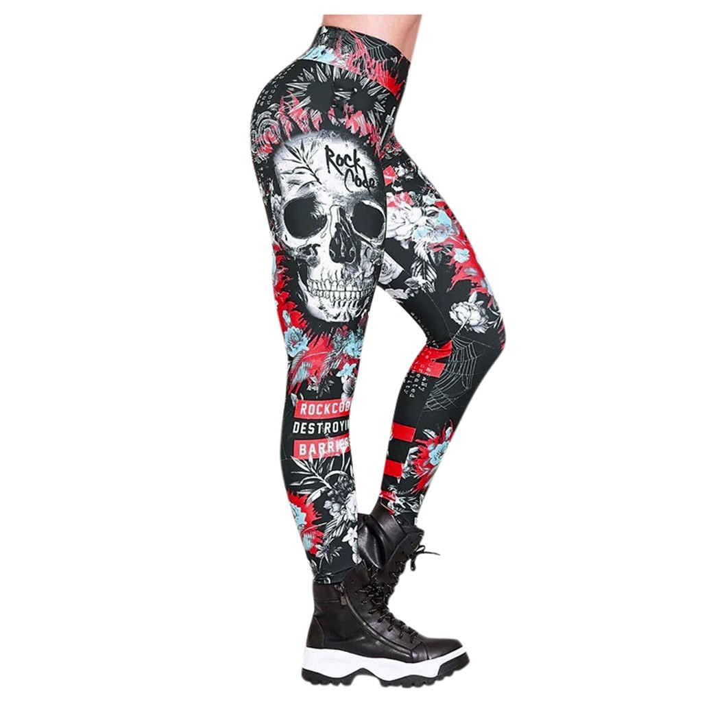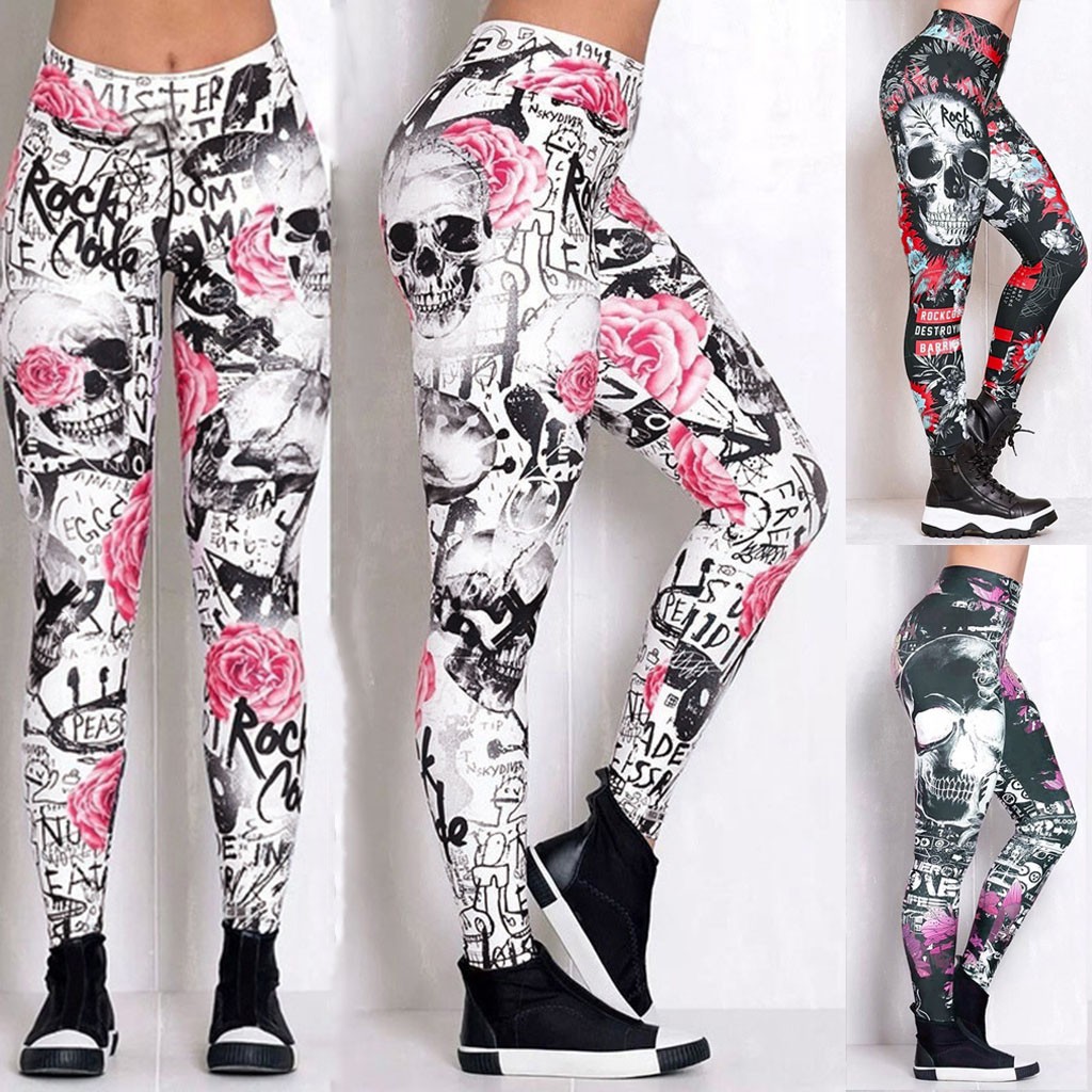 Женские Модные шаровары с принтом черепа, облегающие, Тонкие Леггинсы для йоги с высокой талией штаны