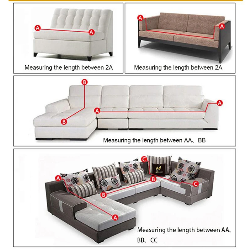 NOTE: 1:Please try to choose the large size is better. For example, the length of the sofa you measure is 140cm. You can choose the 2-seater sofa cover ,avoid the sofa cover being unusable due to a little error. 2:If your sofa back is as high as the armrest, increase the length of the sofa you measured by 25 cm. This type of sofa requires a larger size sofa cover