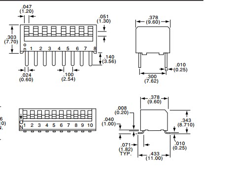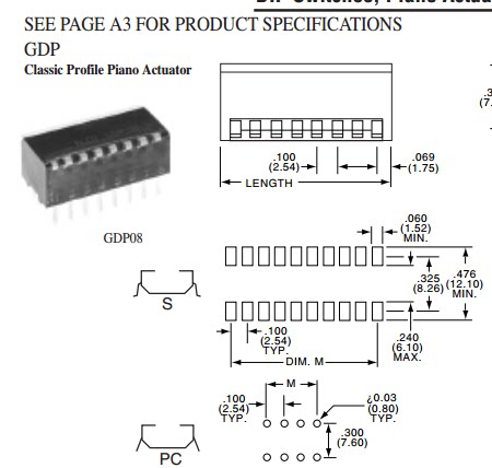 Japan ALCO GDP08S 4-1437590-1/4-1437590-2 DIP switch 8-position patch side dial 2.54mm 8P key type, high temperature resistant with film, with detailed information and size drawing